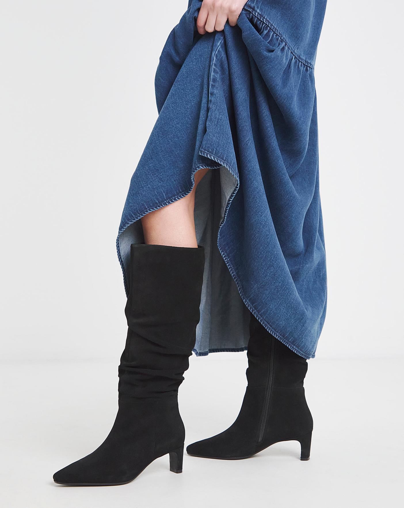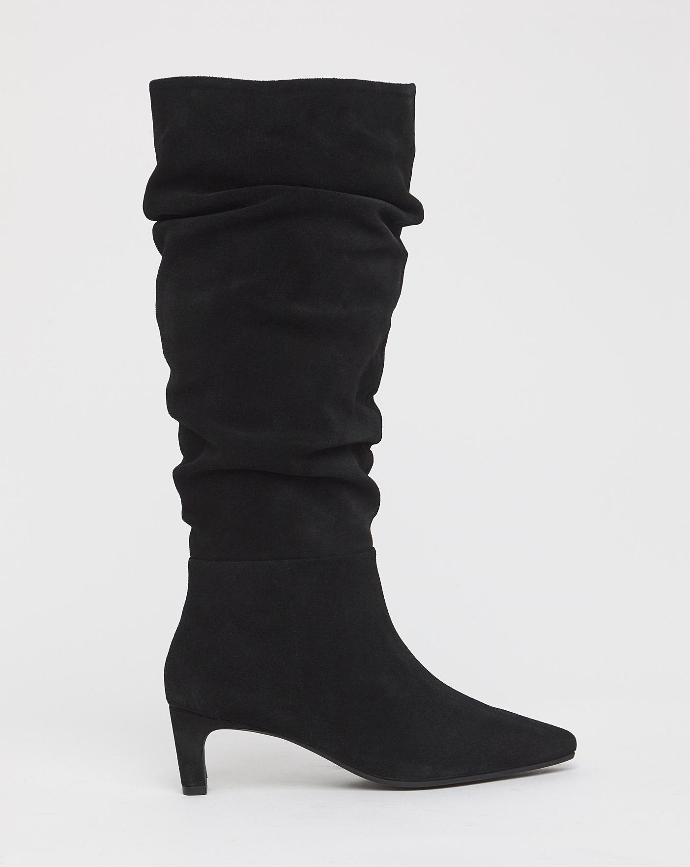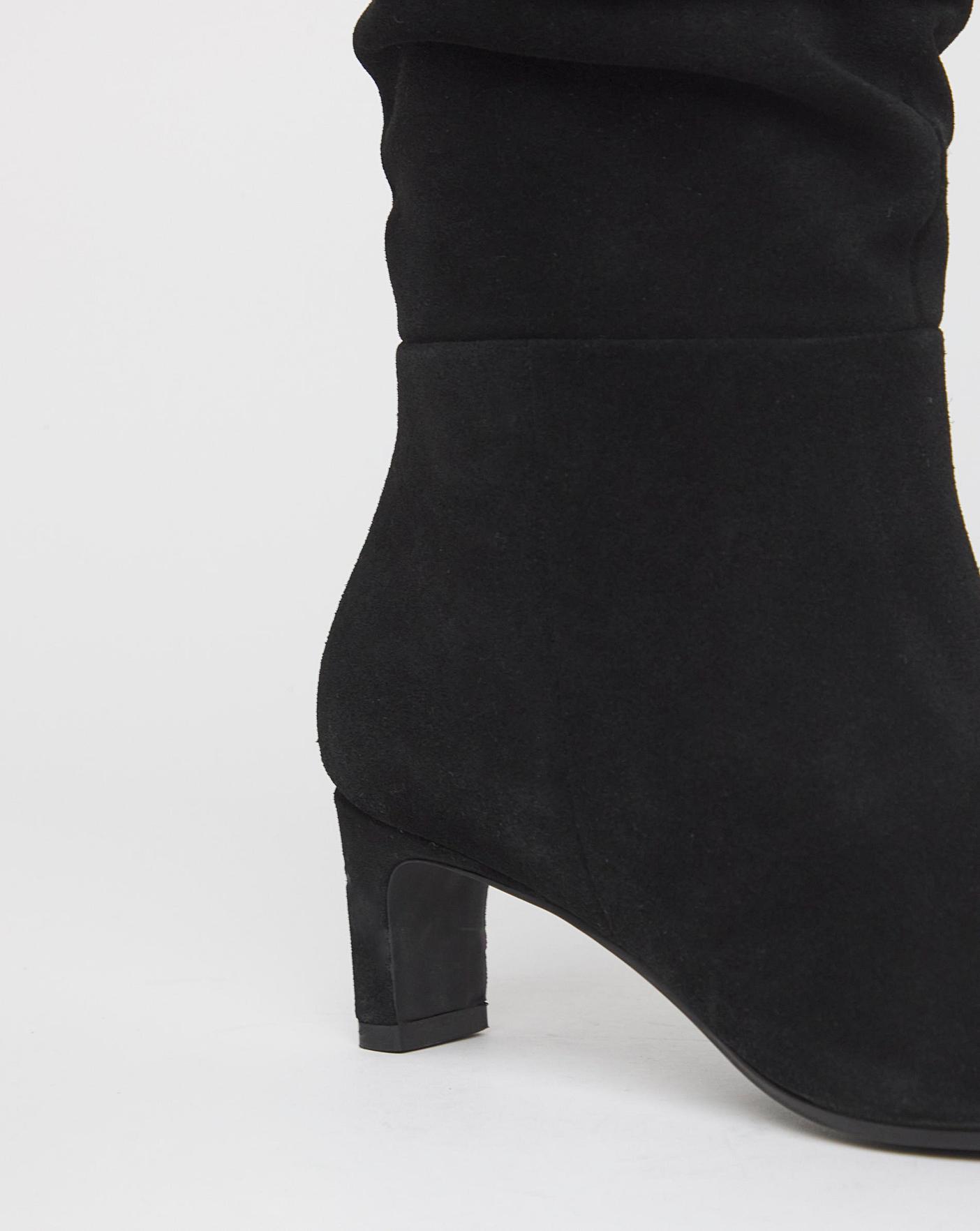 The new IT boot from Anthology is here. With premium suede upper in a luxurious ruched pattern, kitten heel, sophisticated pointed toe and an inside zip for ease.