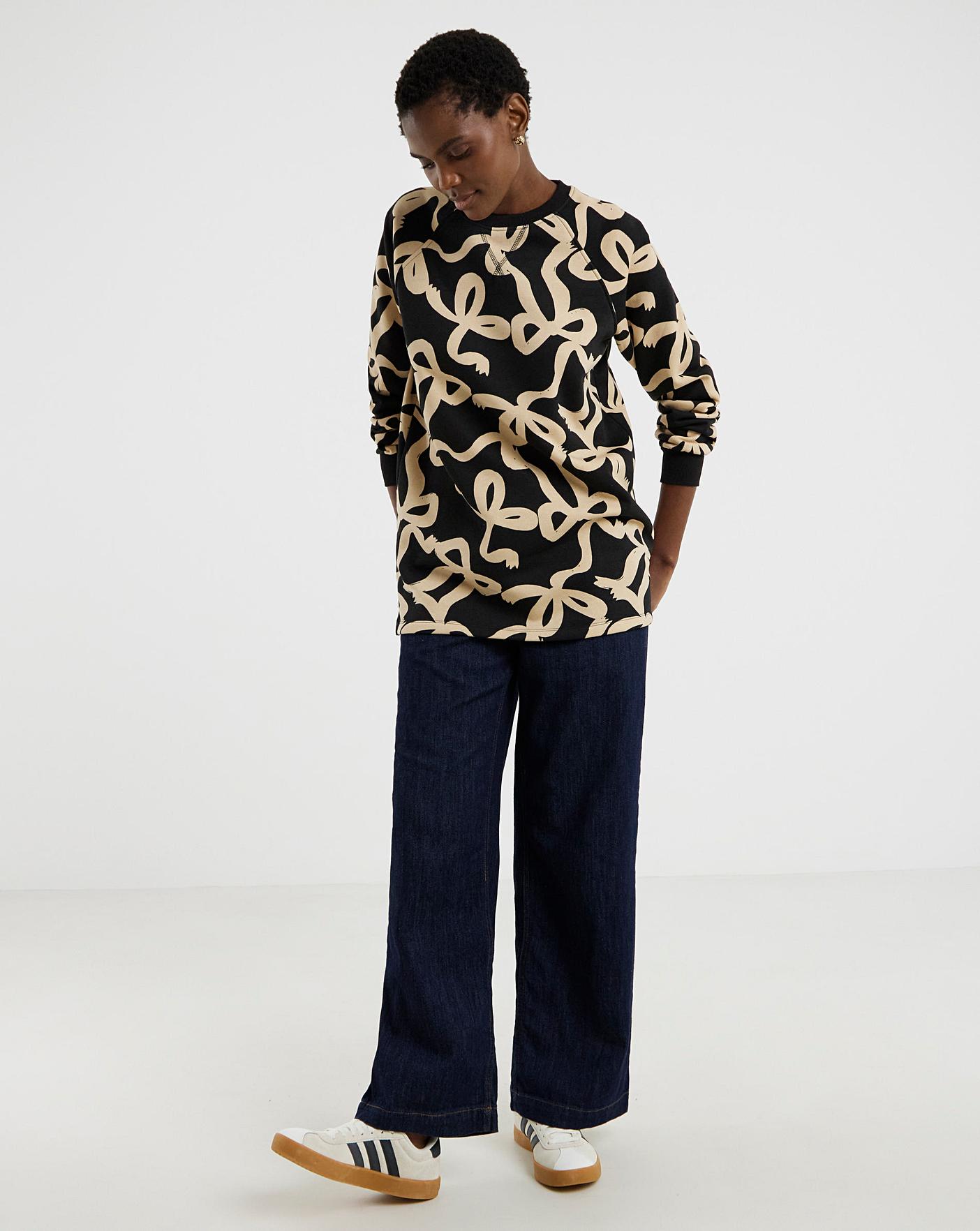 Our classic longline sweatshirt, coming in a new bow print, is an essential in any wardrobe. The new colour way adds newness to your everyday style. Simply pair with jeans or leggings for a casual daytime look.