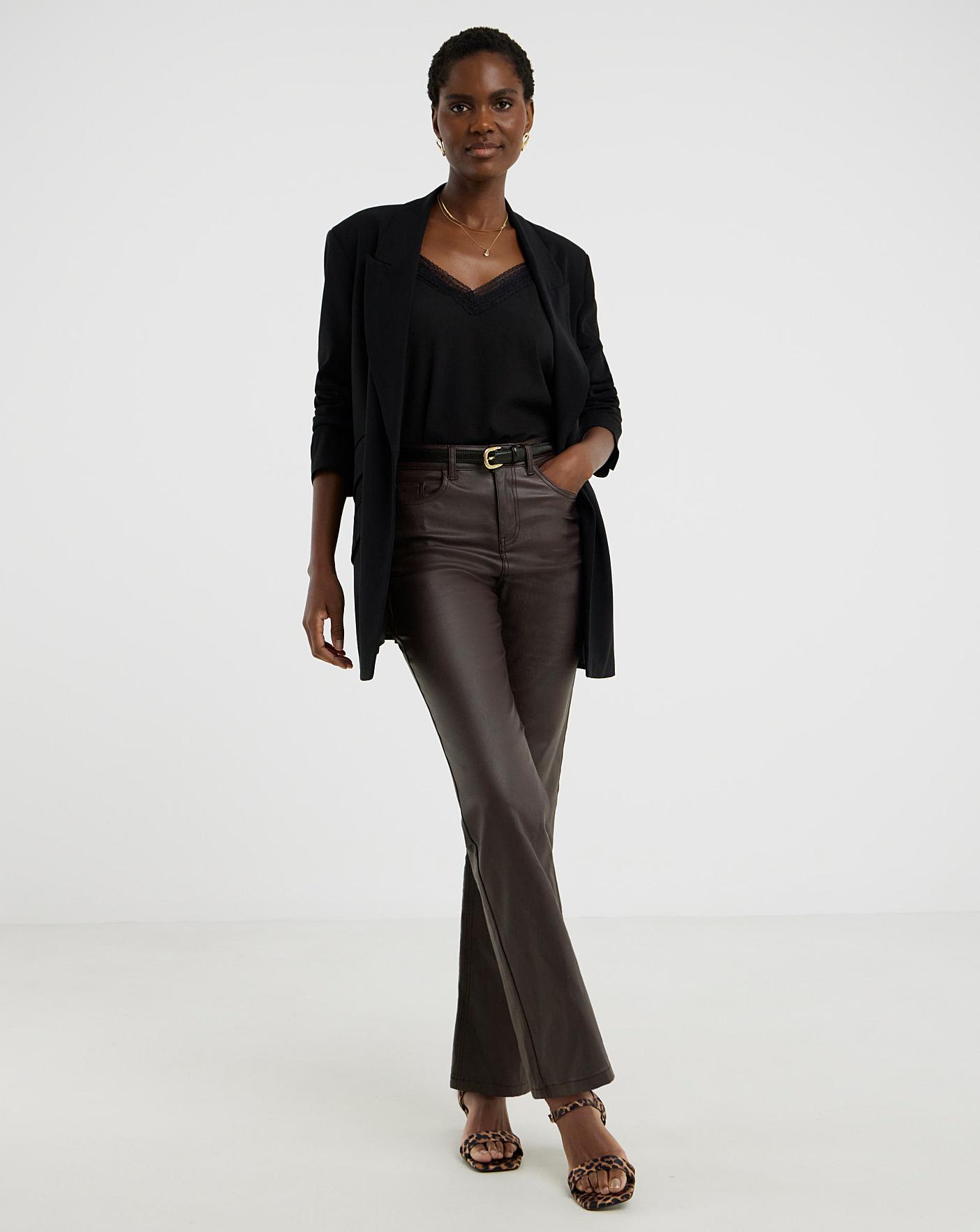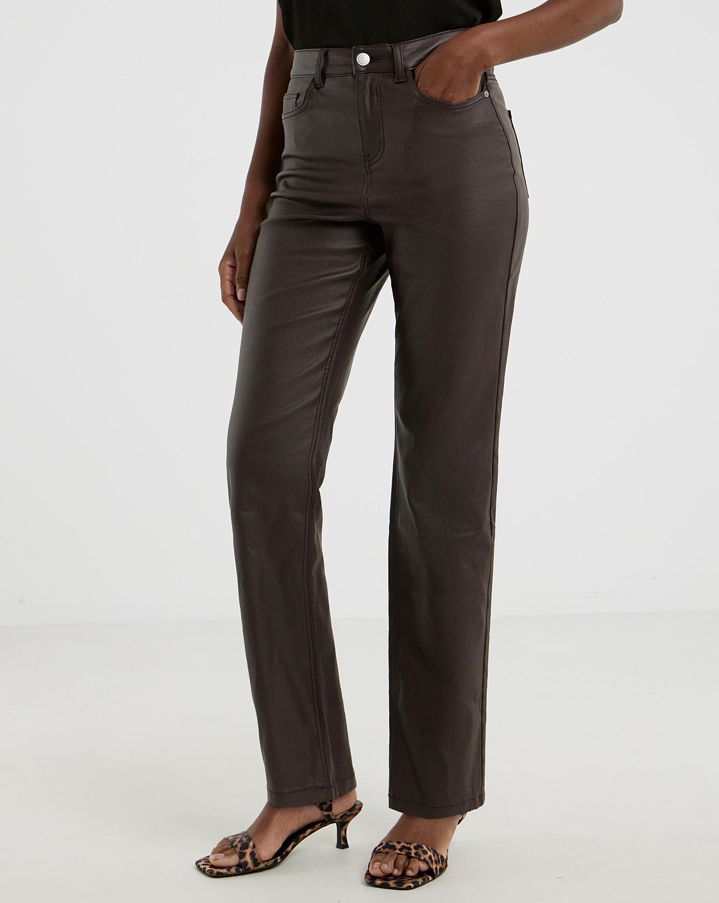 The perfect blend of style and comfort, these Coated Straight Leg Jeans are the perfect Autumn Winter wardrobe addition. Crafted from a stretch denim fabric with a subtle coated finish and featuring classic jean pocketing and in a clean, flattering straight leg fit.