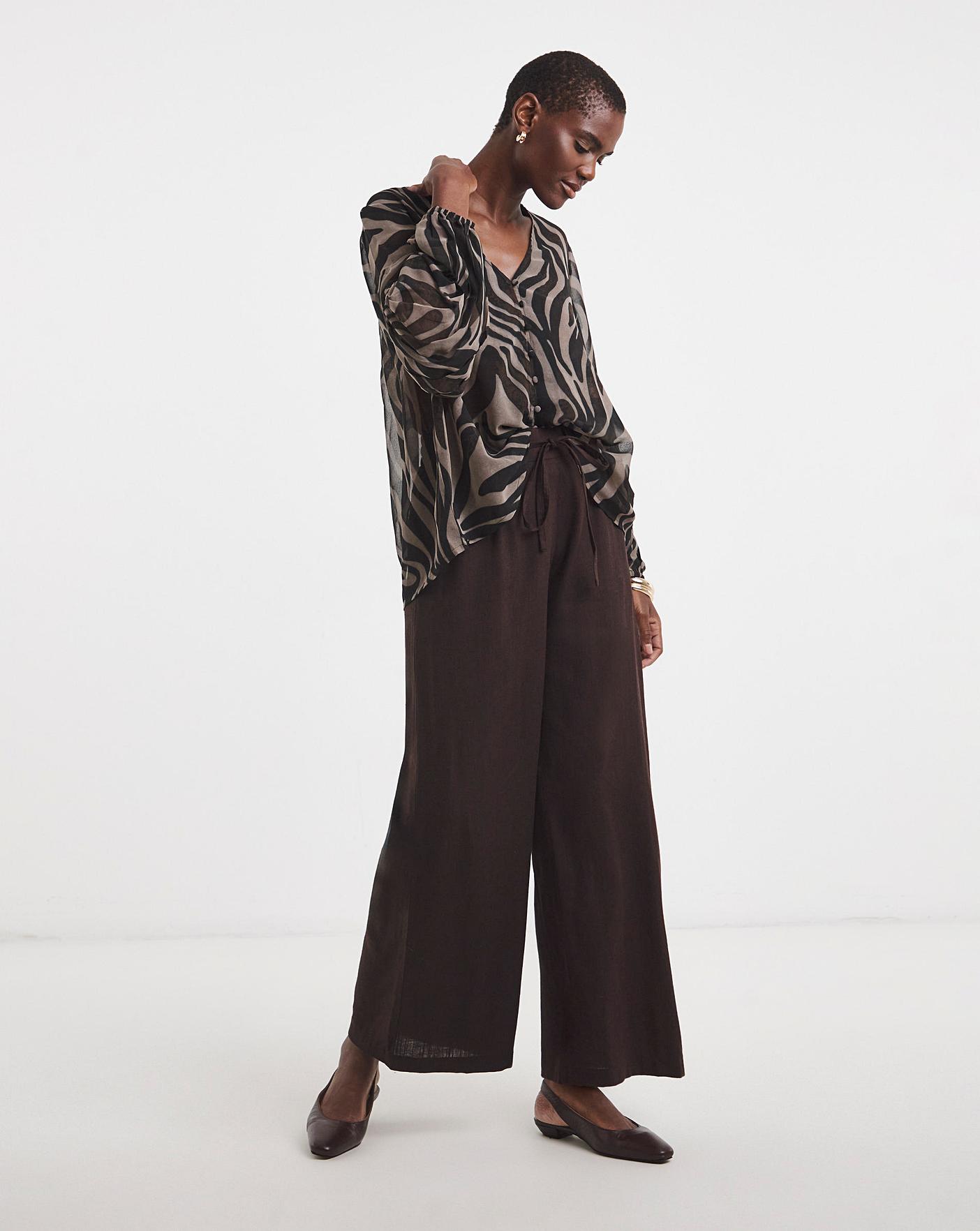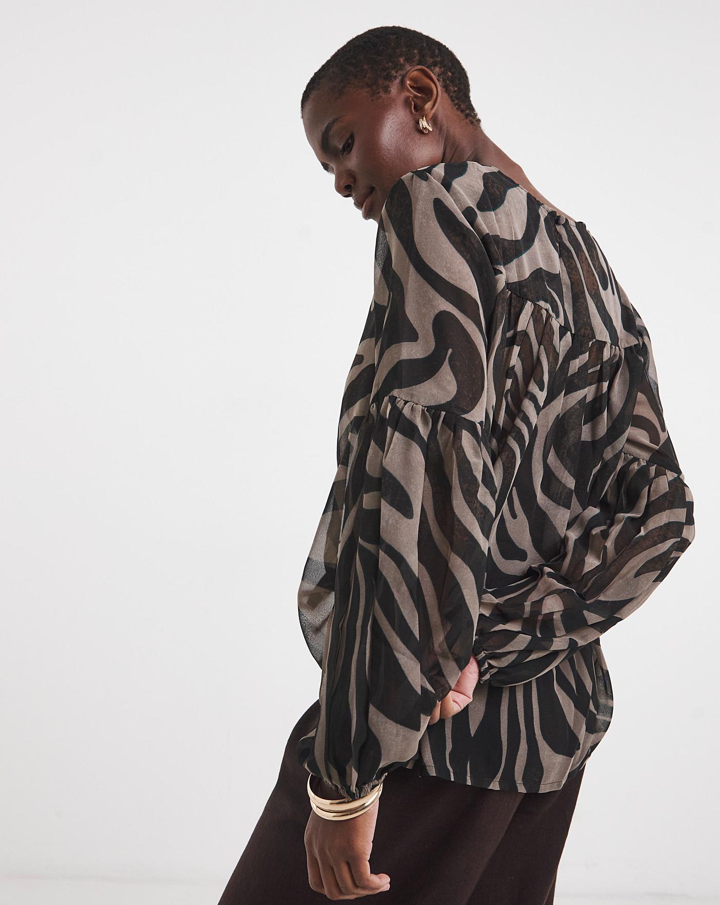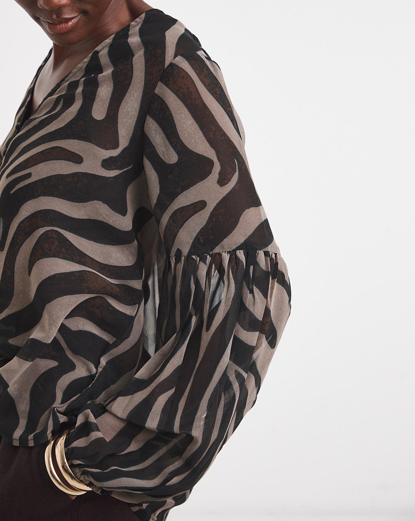 Stylish, on-trend and super easy to wear. This blouse ticks all the boxes. Designed with a V neck, voluminous sleeves and contemporary animal print.
