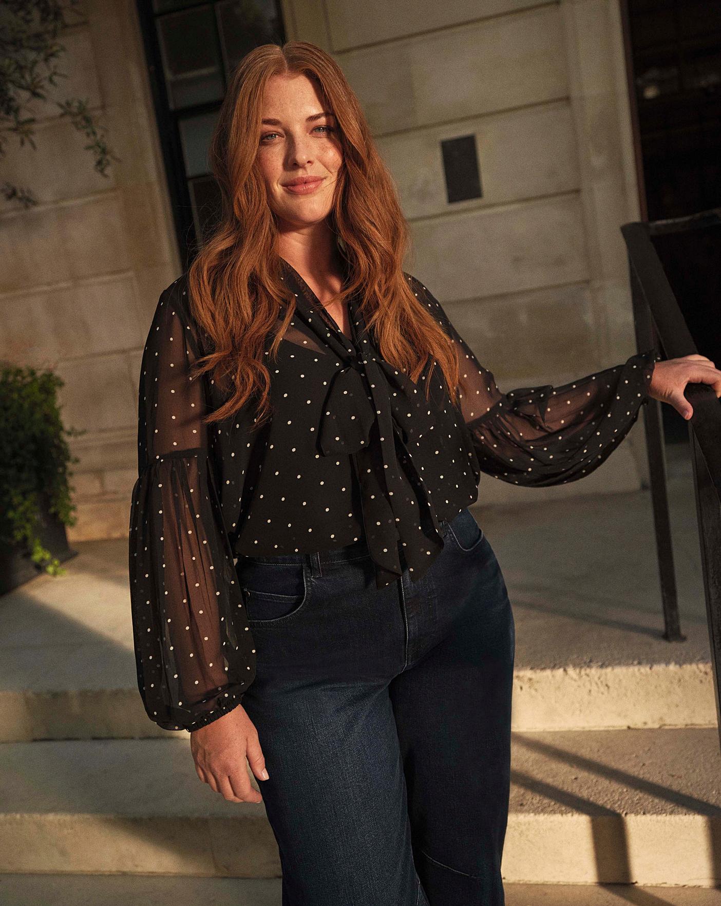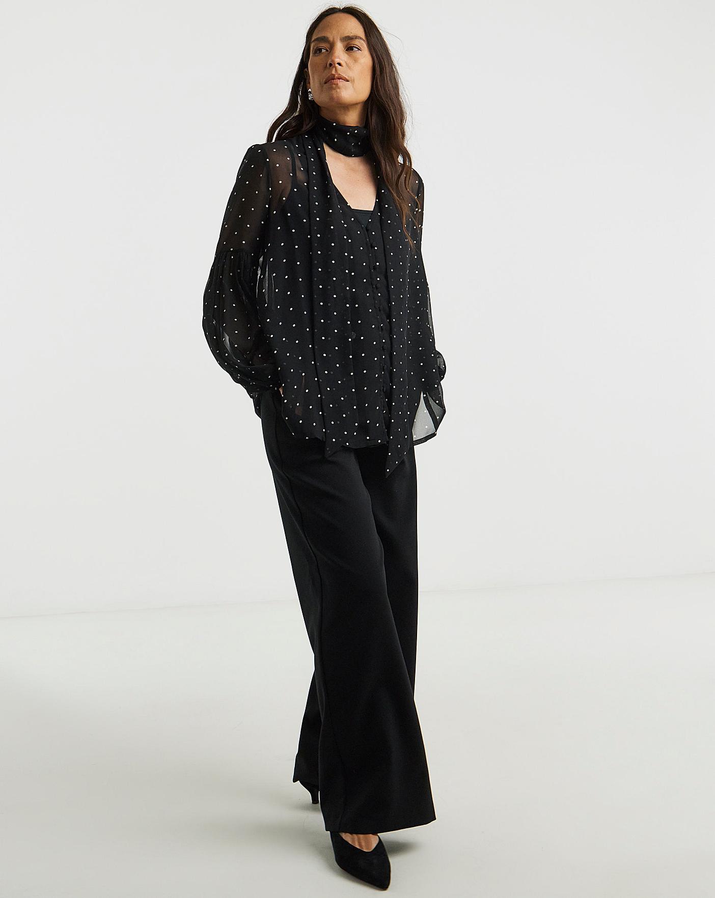 Elevate your wardrobe with our on-trend tie detail blouse, designed in a timeless mono spot print. The fabrication is lightweight and the tie is adjustable with two options for fastening, giving multiple ways to wear. Perfect for desk to dinner and everything in between.