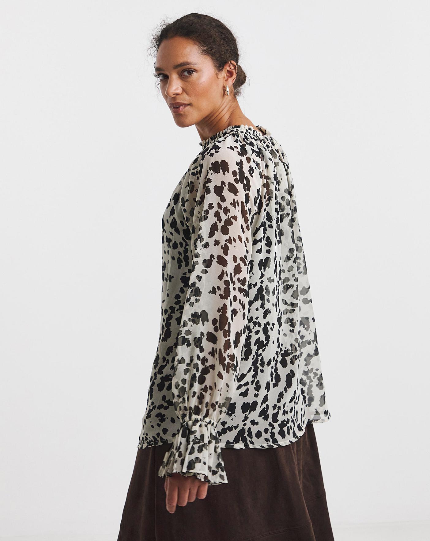 Contemporary, stylish and very on-trend, our shirred blouse designed in an easy-to-wear cow print will be your go-to choice for so many occasions. Tuck it into tapered trousers for the office, or dress it up with black denim and accessories.