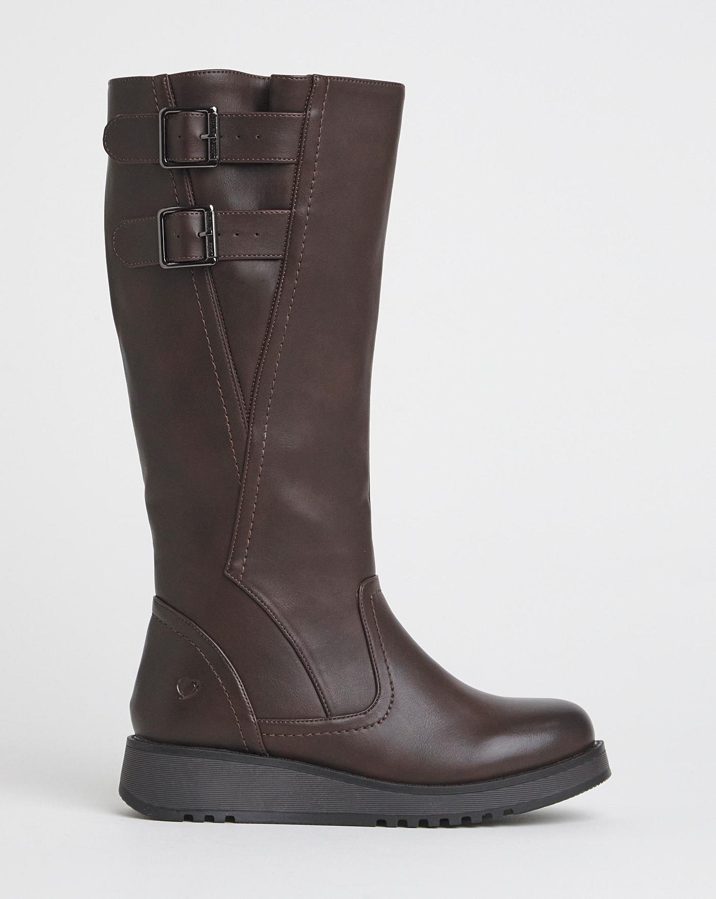 Available in Extra wide and Curvy calf fit, our new Heavenly feet high leg Bernice Boot is the perfect statement for your winter wardrobe. Buckle detailing, Zip fastening, Curvy calf fit.