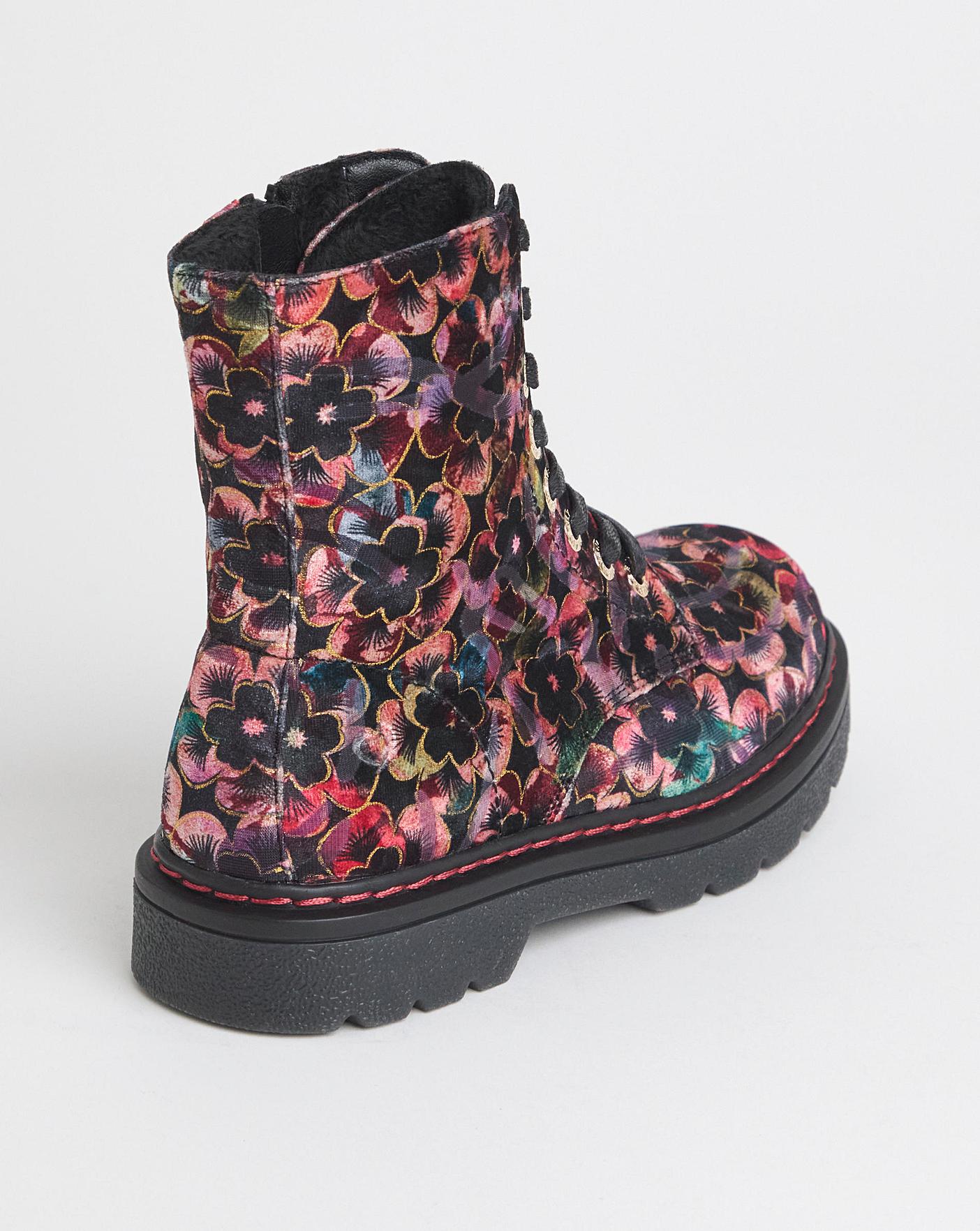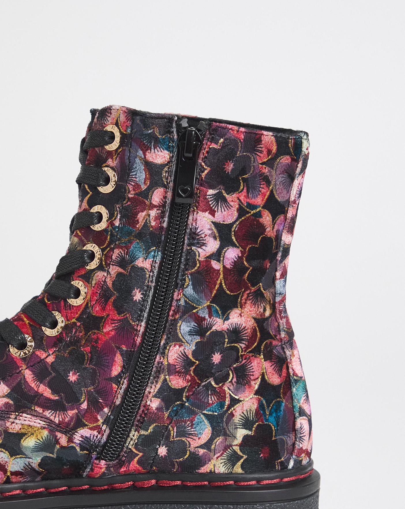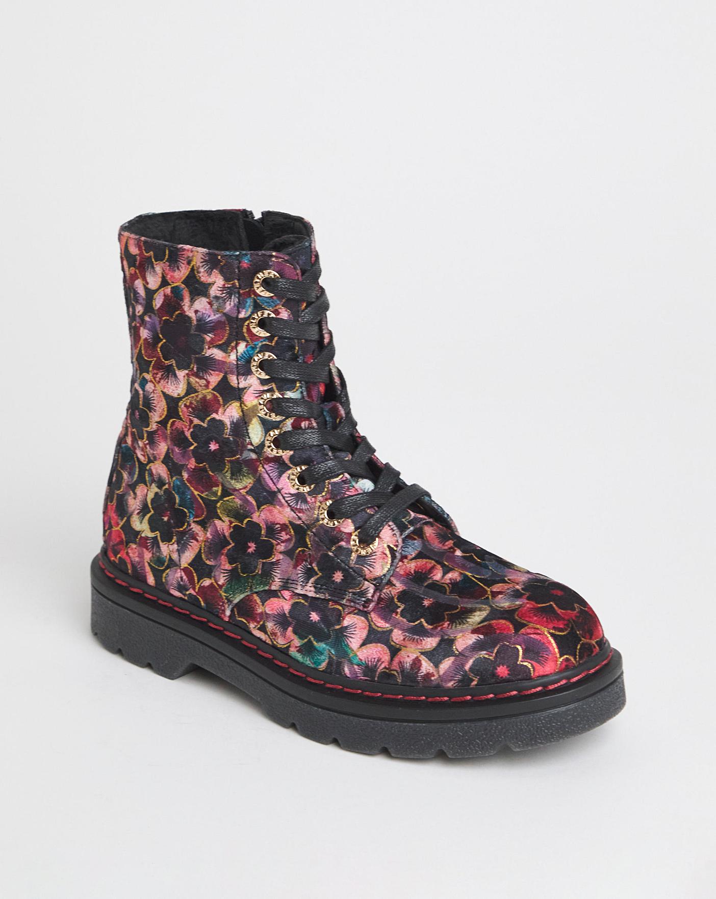 Our new Heavenly Feet lace ankle boots are perfect for a utility inspired look. Also available in EEE fit. Chunkier sole, Floral print, Zip fastening.