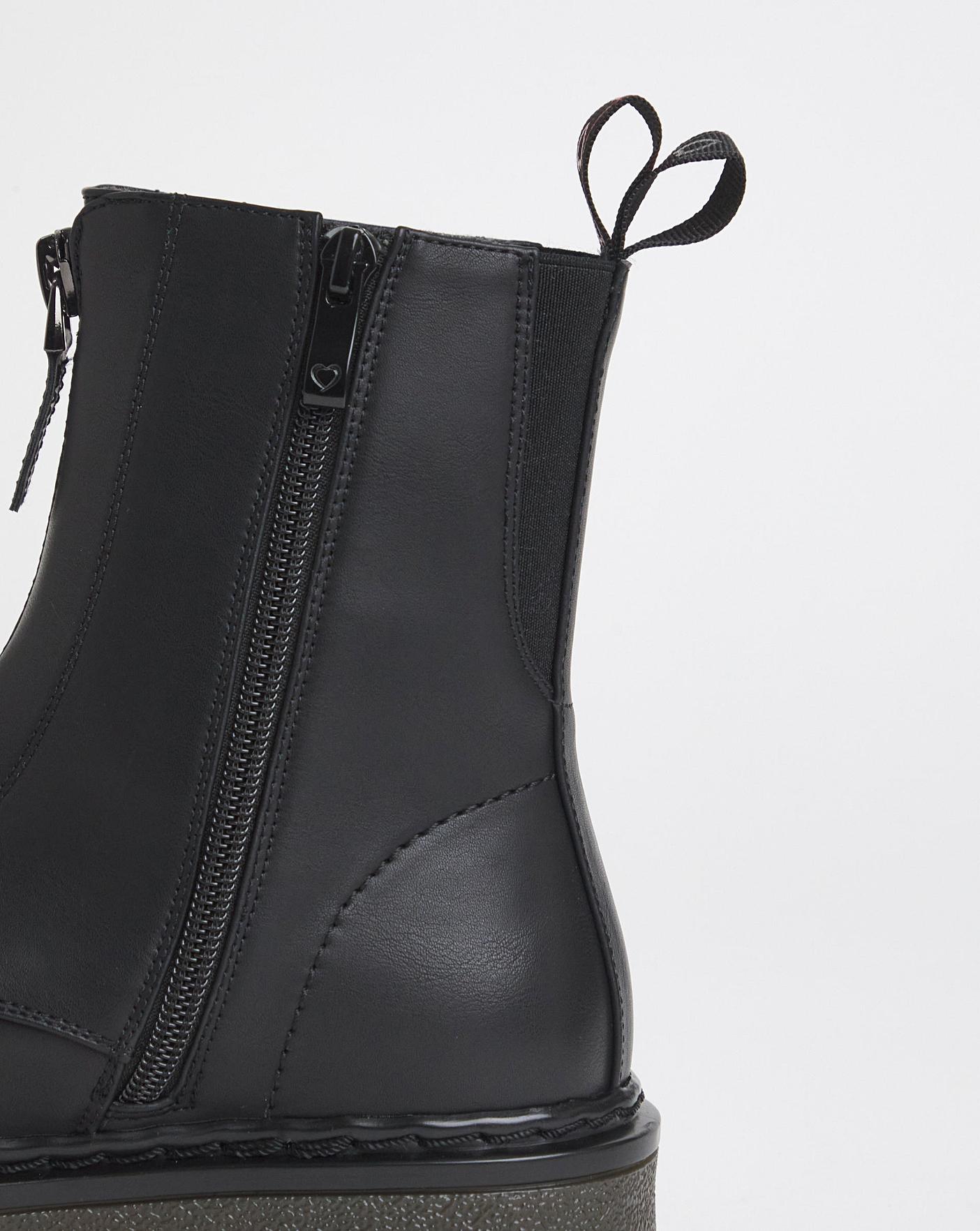 Available in an exclusive to us EEE fit, this wedged boot by Heavenly Feet is a must-have wardrobe staple for it's versatility. Signature front zip. Back tab for ease.