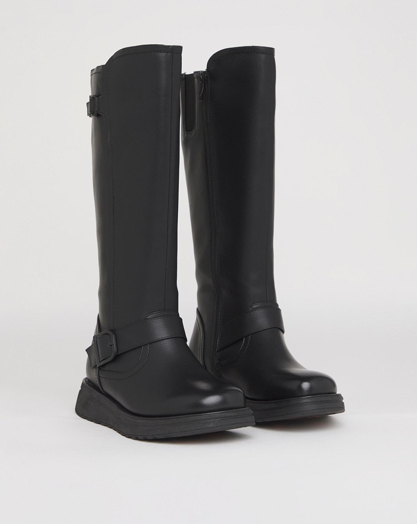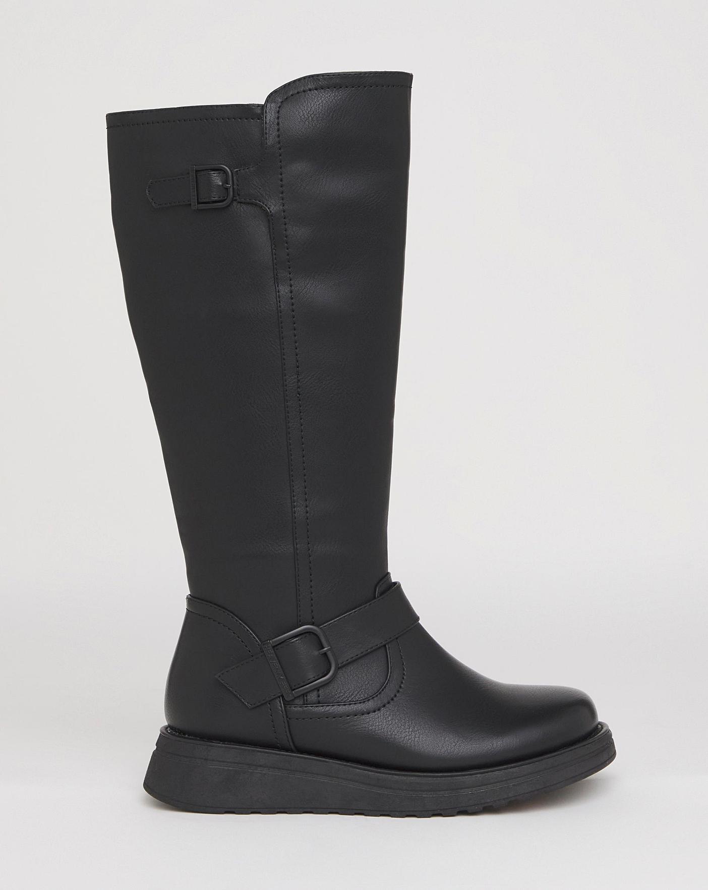 Step into style and comfort with these trendy boots. Zip fastening. Buckle detailing. Available in Standard and Curvy calf fit.