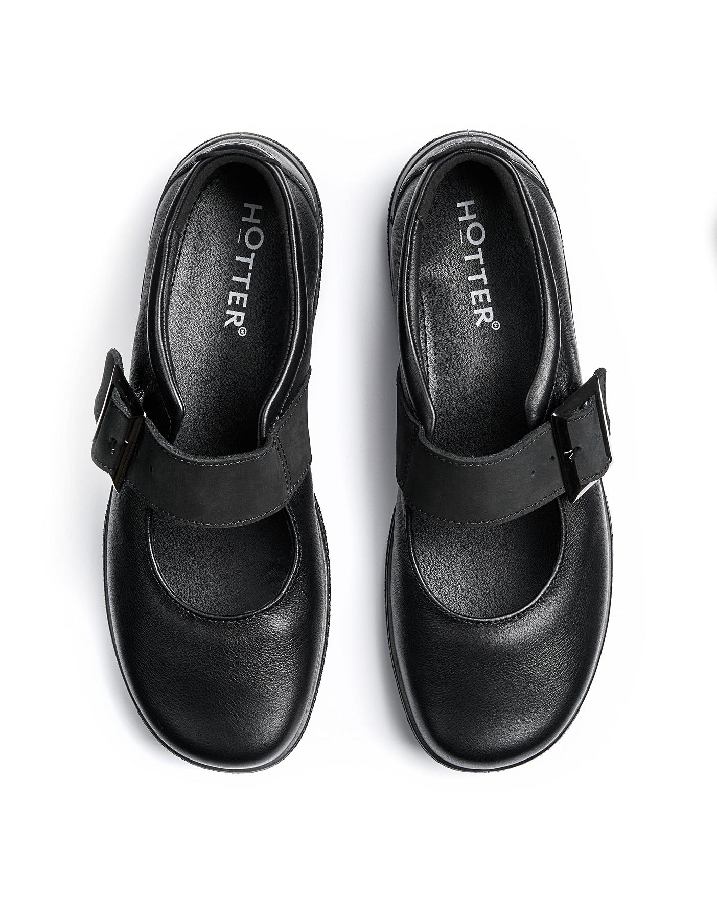 Hotter Penny Mary Jane Penny is classic, casual and in every way comfortable. Soft insoles and leather uppers keep feet feeling cushioned whilst a soft suede strap sweeps over the foot. Go further too with energy-returning Cushion+ technology and find your bespoke fit with an adjustable buckle strap. Made in UK Upper: Leather-Nubuck Lining: Leather Sole: Polyurethane Fastening: Buckle Heel Height: 23mm, 1 Inch