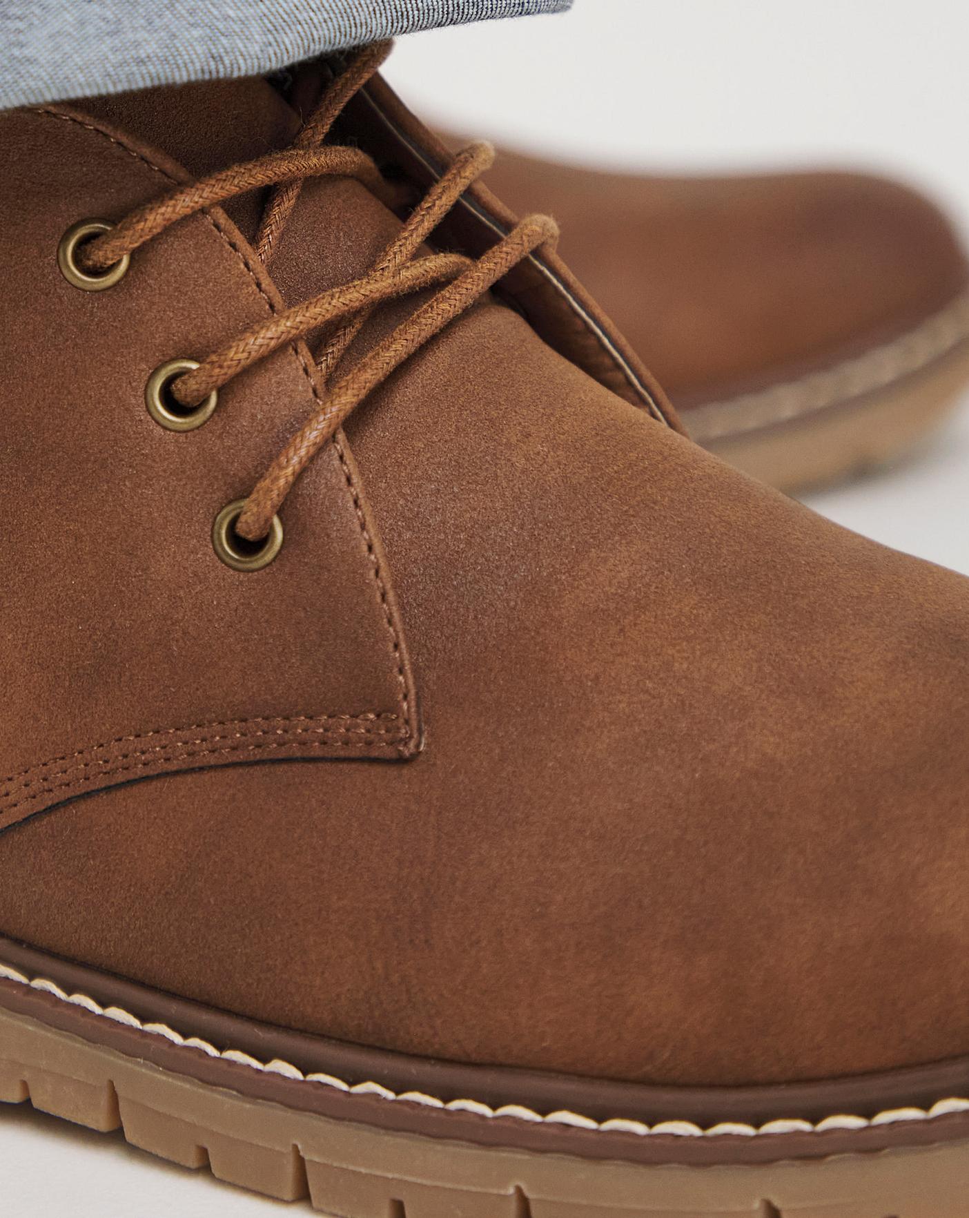 These Jacamo leather look wide fit chukka boot in tan are great for this season. Pair them with some jeans and a flannel shirt for a casual look.