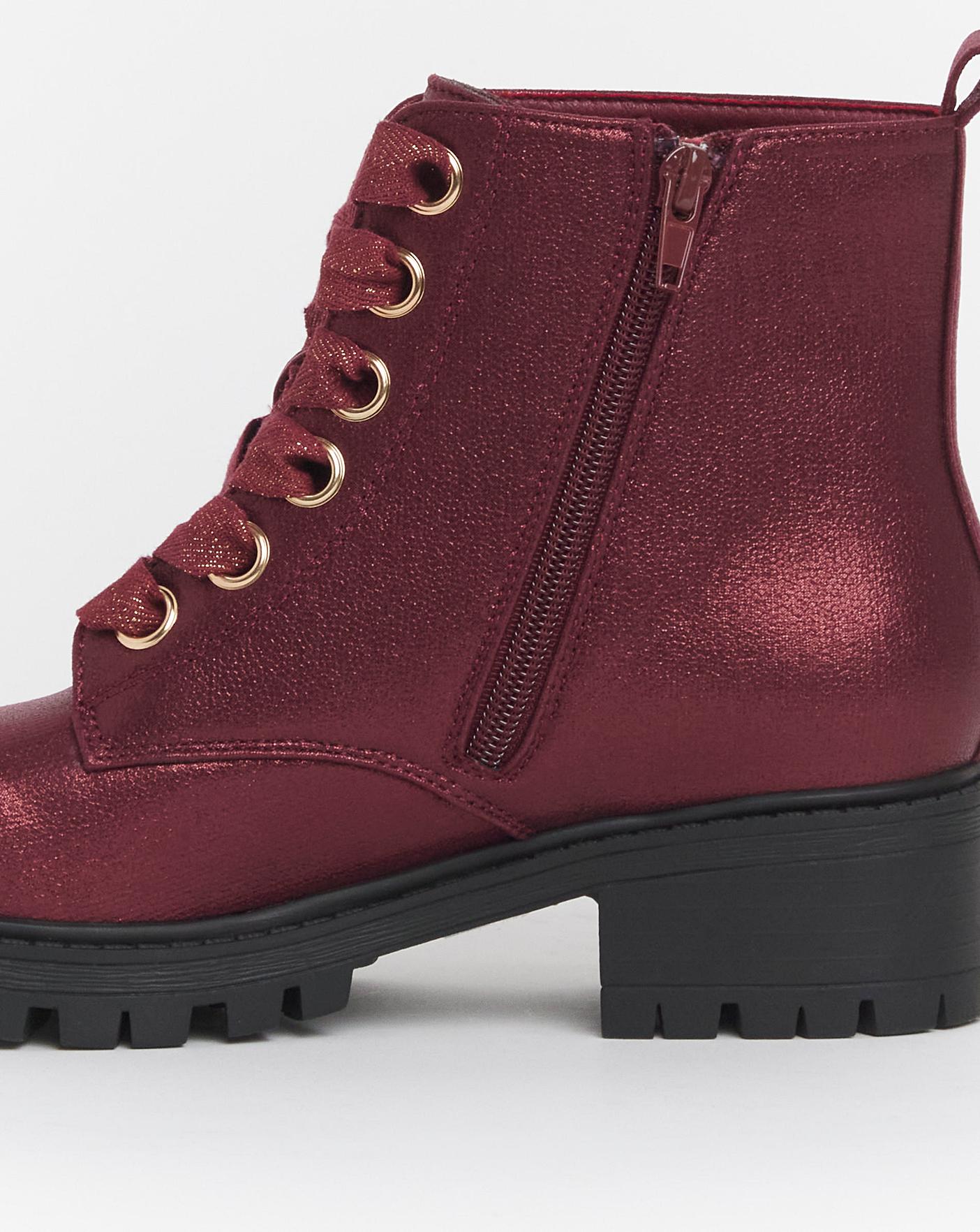 The Joe Browns Chunky Lace up Boots are a must have for any wardrobe, get comfort and style by adding these to your collection. Simply Pair with your favourite outfit for a refreshed look. Lace up detailing, Burgundy colourway, Back tab for ease.