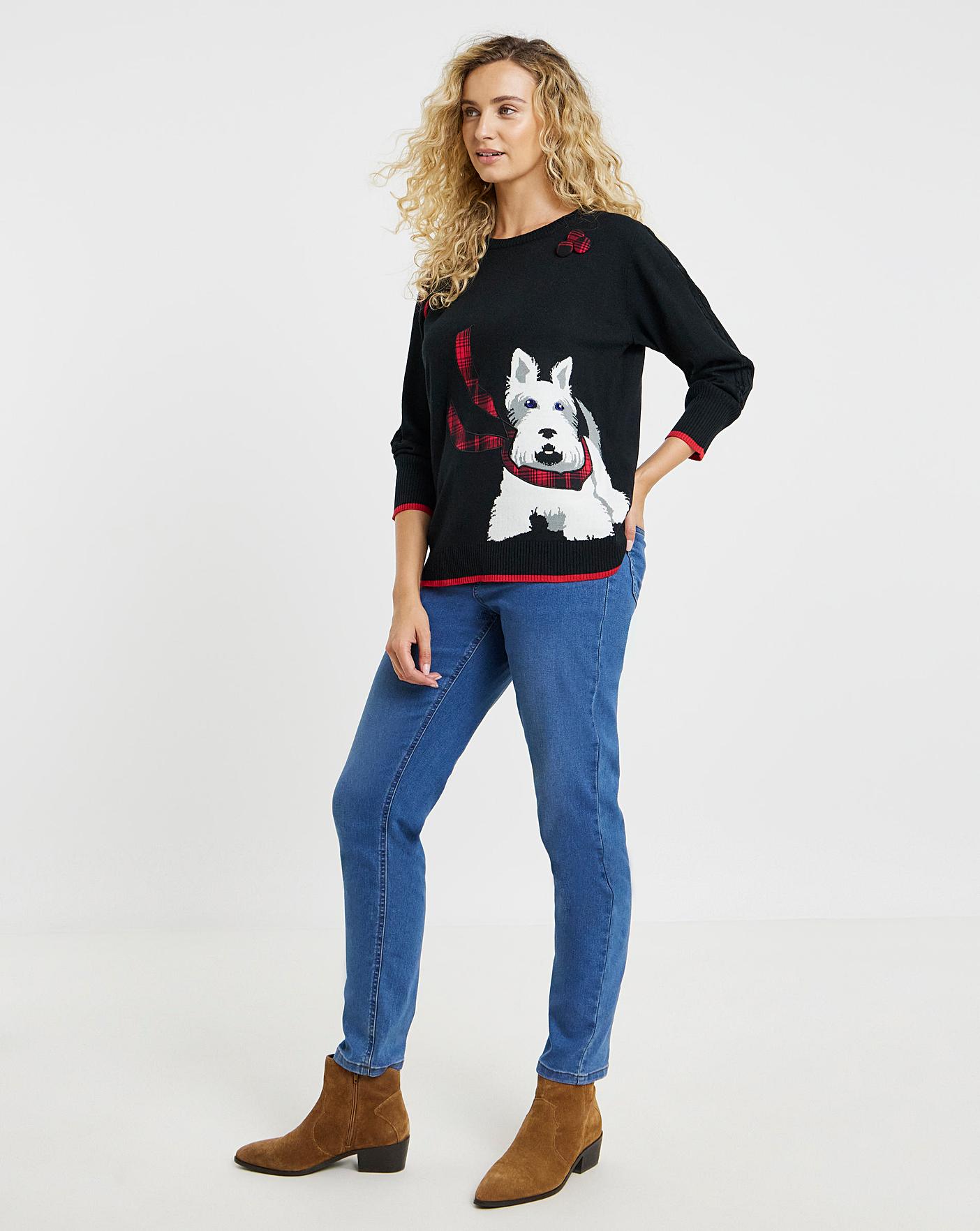 Calling all animal lovers, our Scottie dog jumper is for you! A perfectly playful lightweight knit, its great for layering with all your tees and shirts this winter. Not only will it keep you nice and toasty, but youll find more details to love every time you wear it. Every womans best friend, this cute pooch is ready to join all your winter adventures!