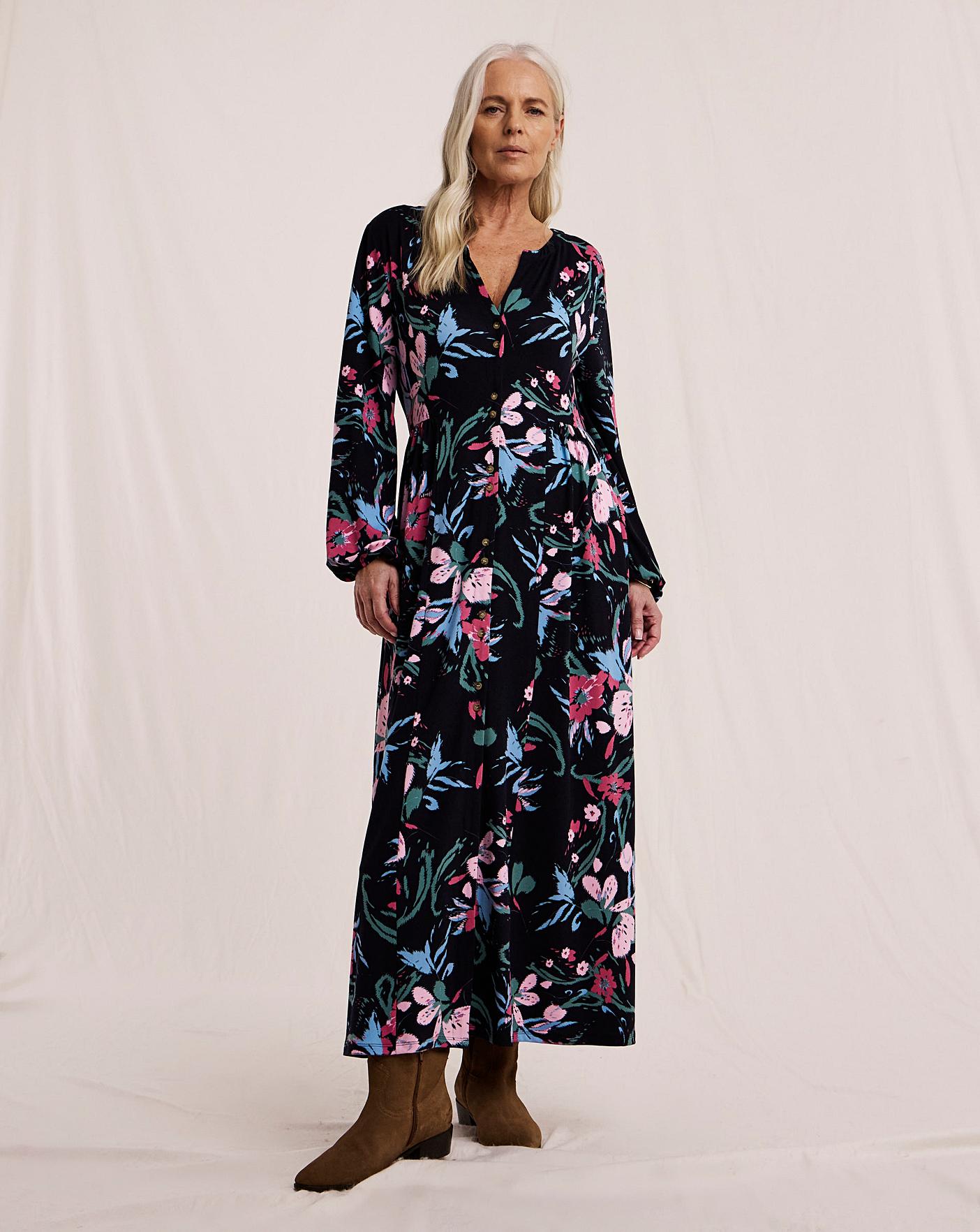 Our Julipa button through jersey dress is the perfect wardrobe staple. Featuring, front button fastening, flattering midi length, pockets and soft jersey fabric.