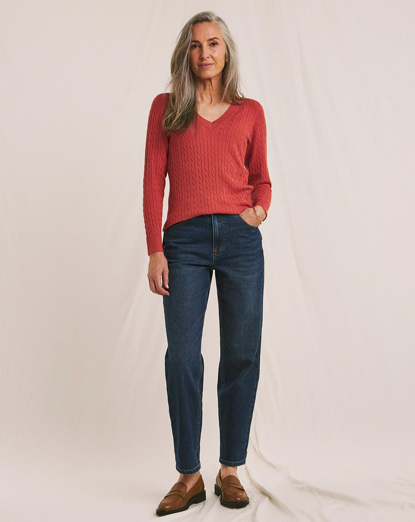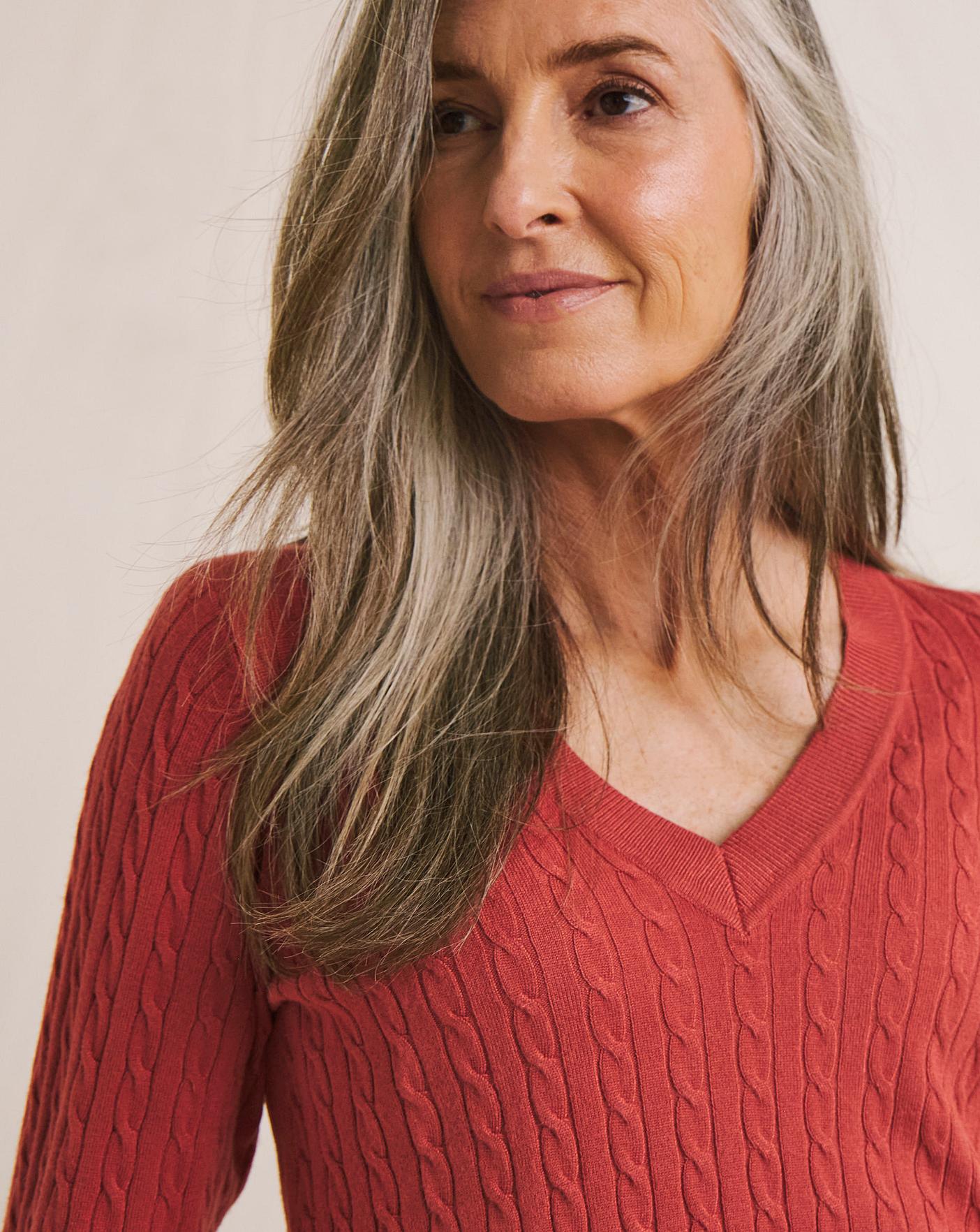 Our Julipa rose cable jumper is the timeless piece you need in your wardrobe. Featuring, flattering v neckline, regular fit, soft cable knit and long sleeves.