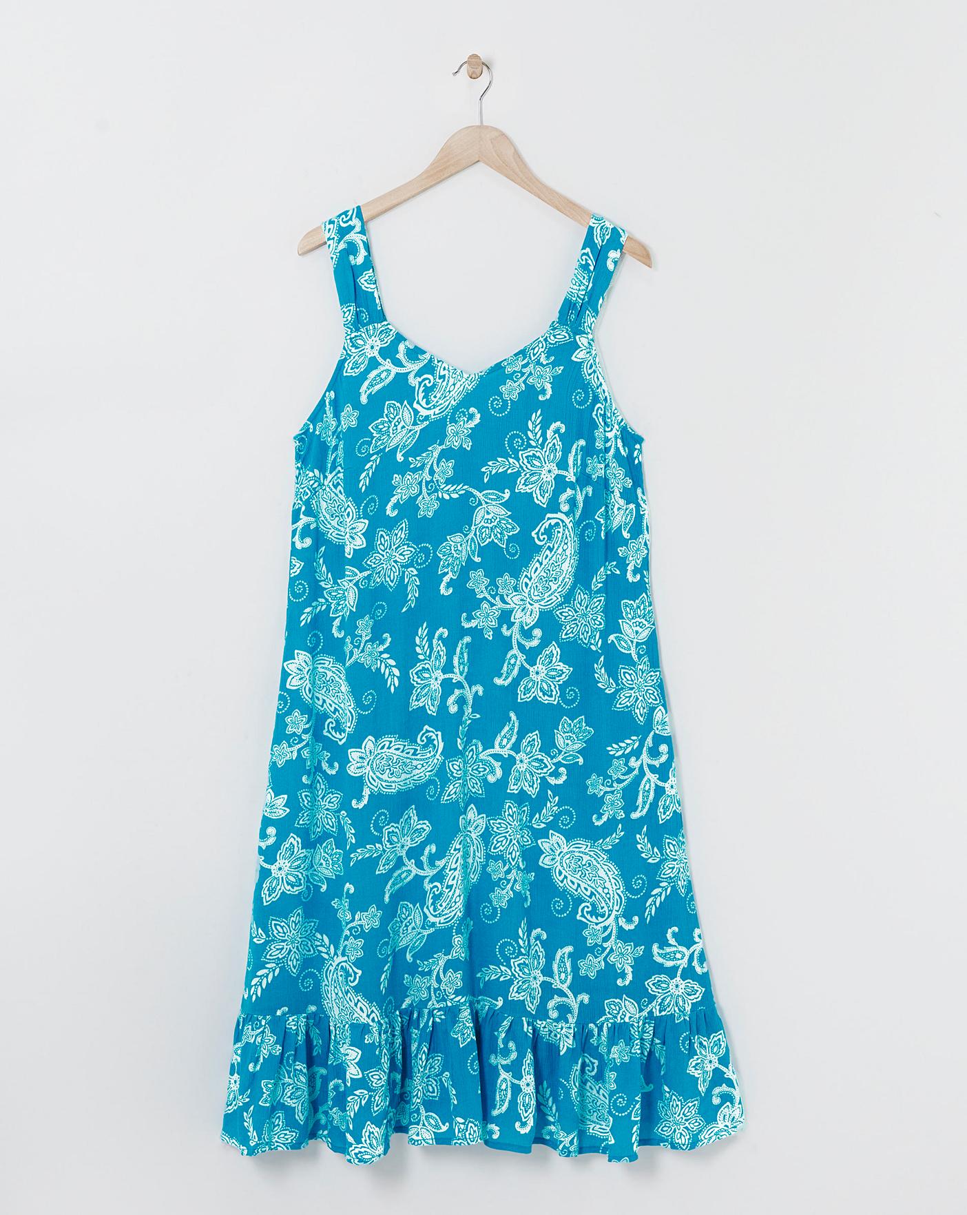 Made from a non iron sustainable crinkle fabric, this frill hem shift dress is the perfect summer silhouette. Made with a added pintuck details on the straps.