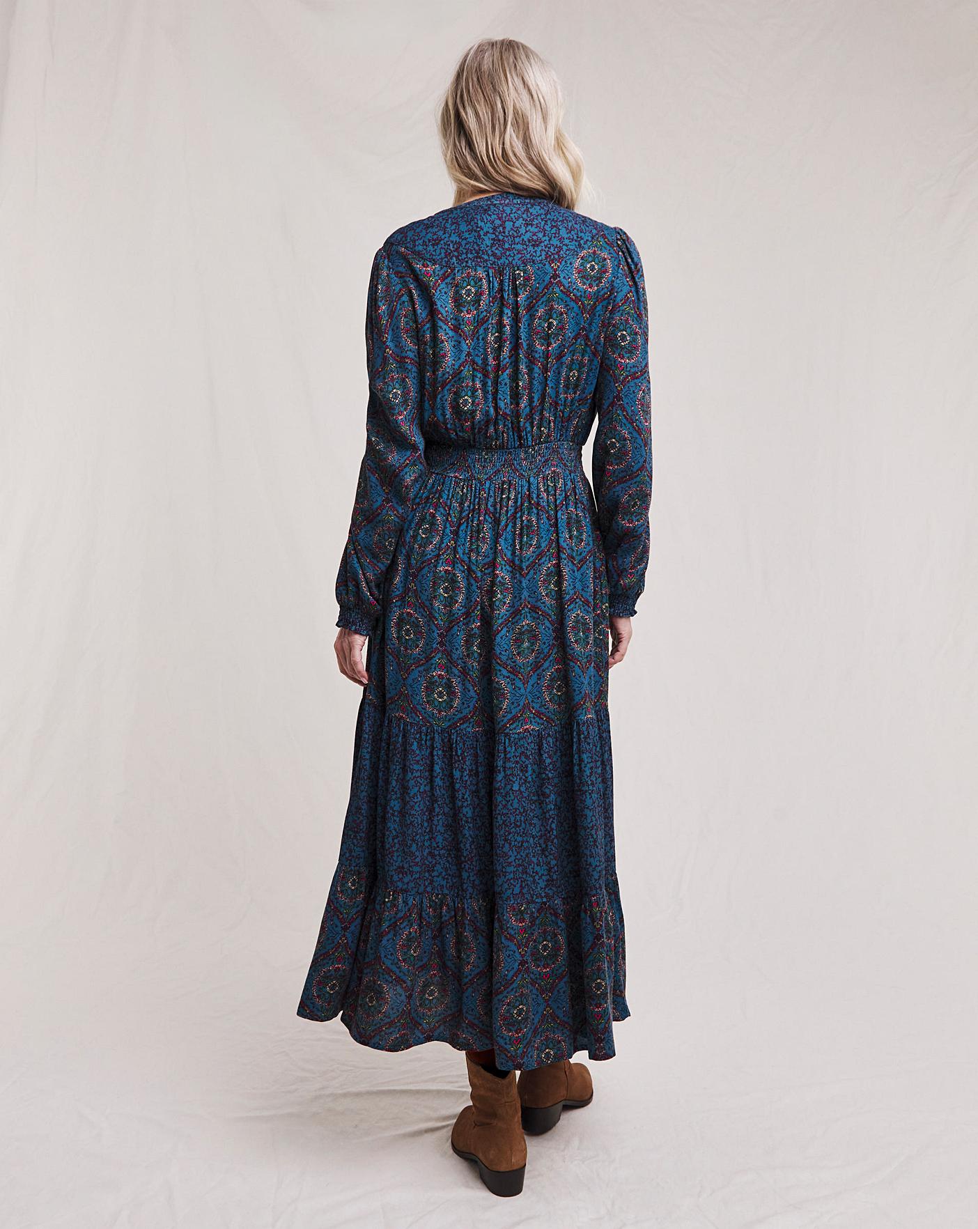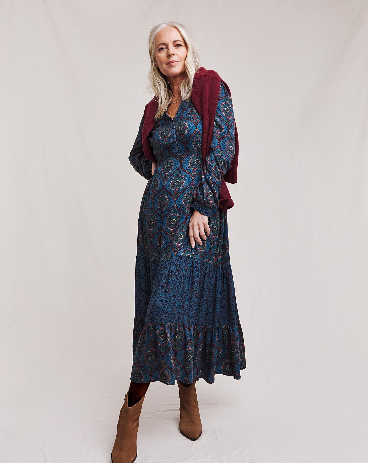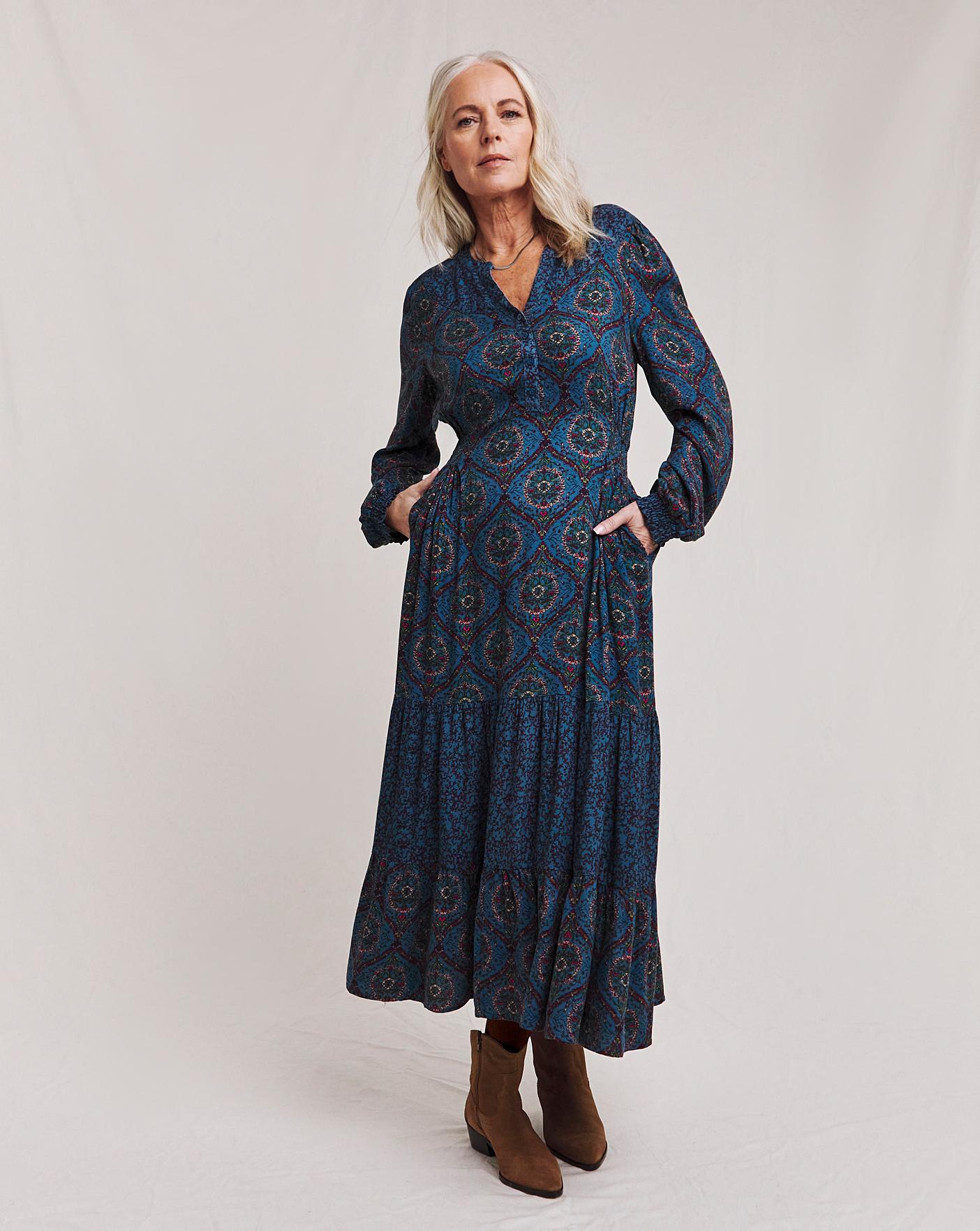 This mix print dress features long sleeves, a flattering notch neckline and button fastenings. Made in a comfortable moss crepe viscose fabric.