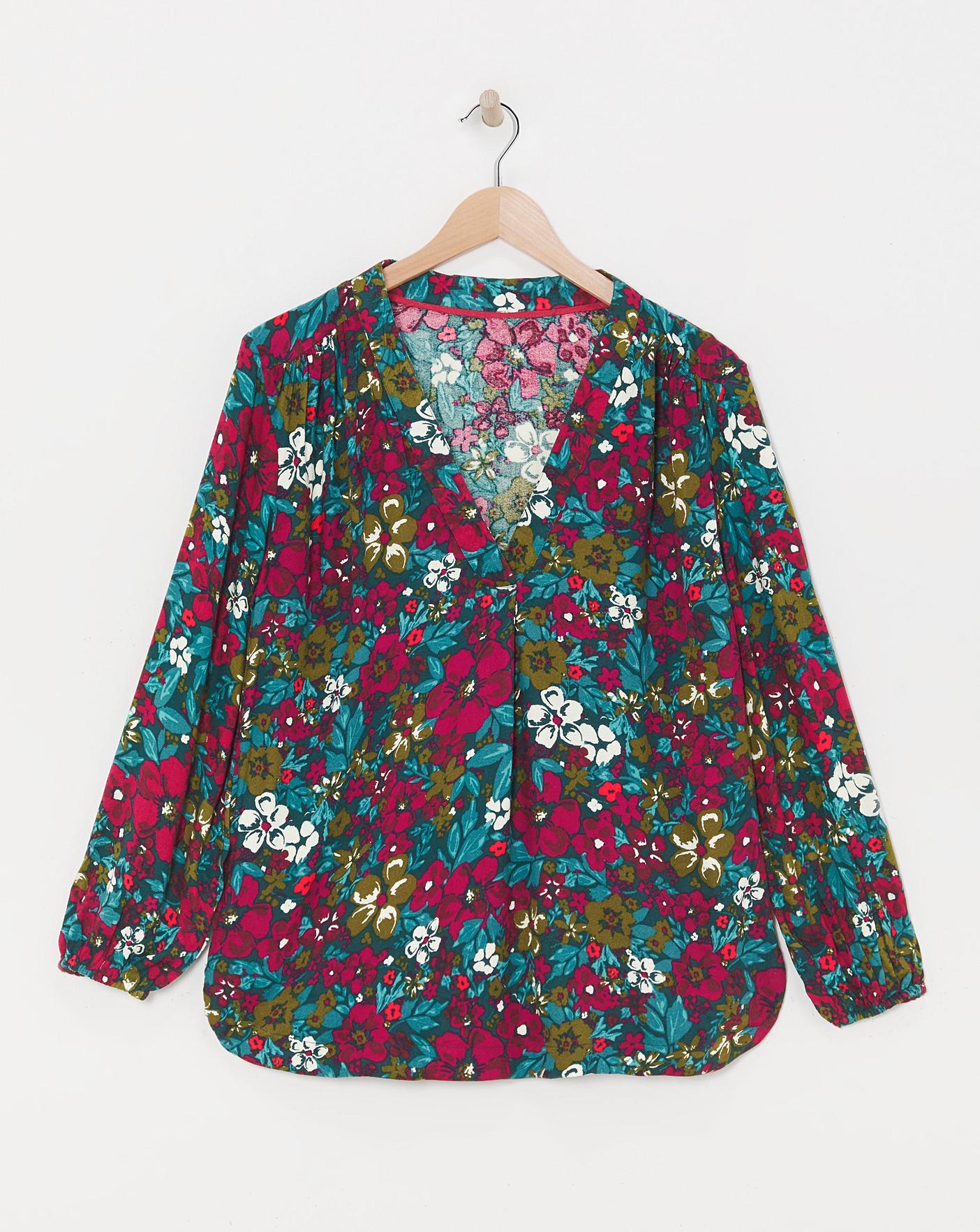 This printed blouse features long sleeves and a flattering V neckline. Made from a lightweight viscose moss crepe material.