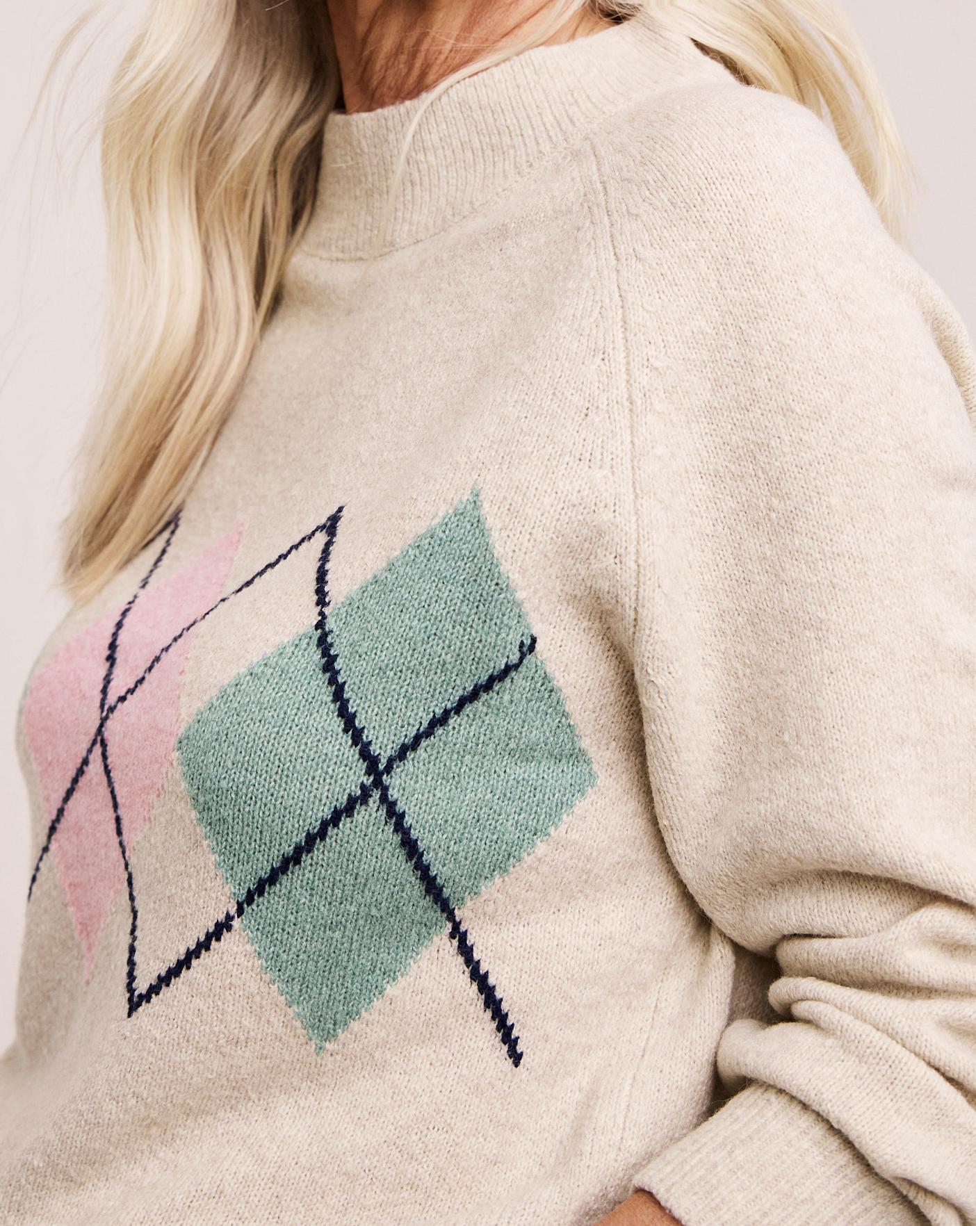 Our Julipa argyle jumper is the perfect addition to elevate your winter wardrobe. Featuring, long sleeves, placement argyle print, high neckline, soft wool mix yarn, regular fit.