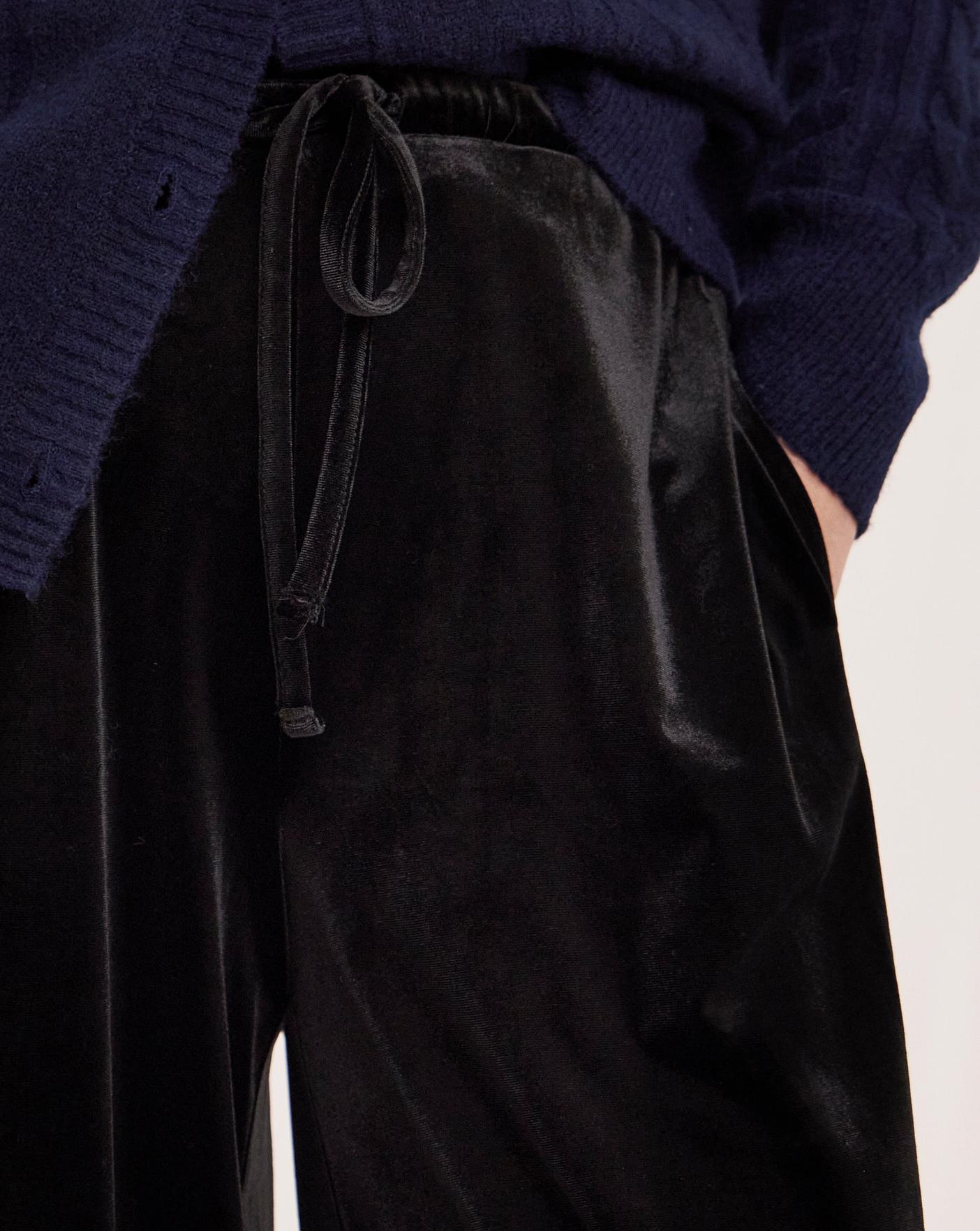 Our Julipa velvet straight leg trousers are the perfect piece to elevate your wardrobe. Featuring, black velvet fabrication, straight leg fit, elasticated waist details, pockets.