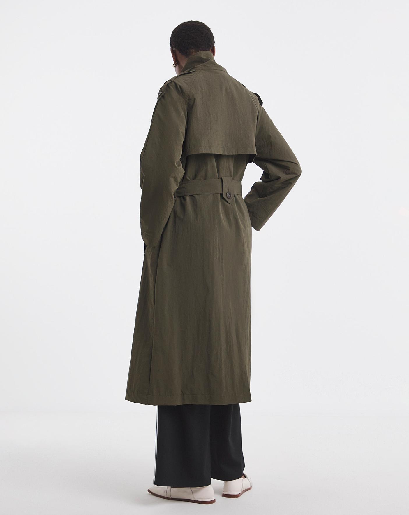 Designed in a lightweight, shower resist fabric, this funnel neck trench coat is a stylish outer layer for the season. Featuring a funnel neck, button front, pockets and a tie waist.