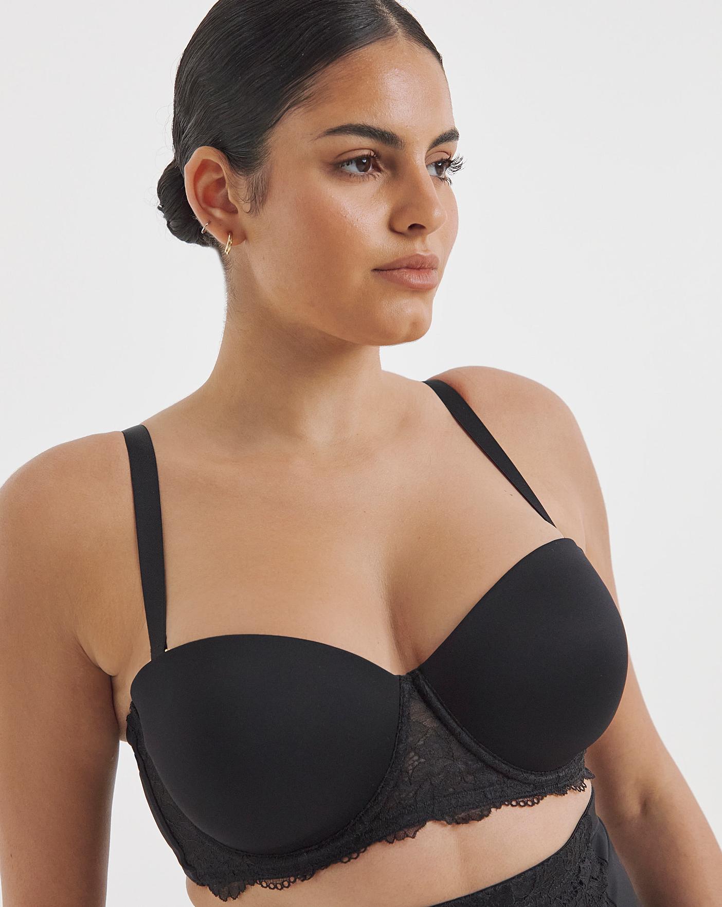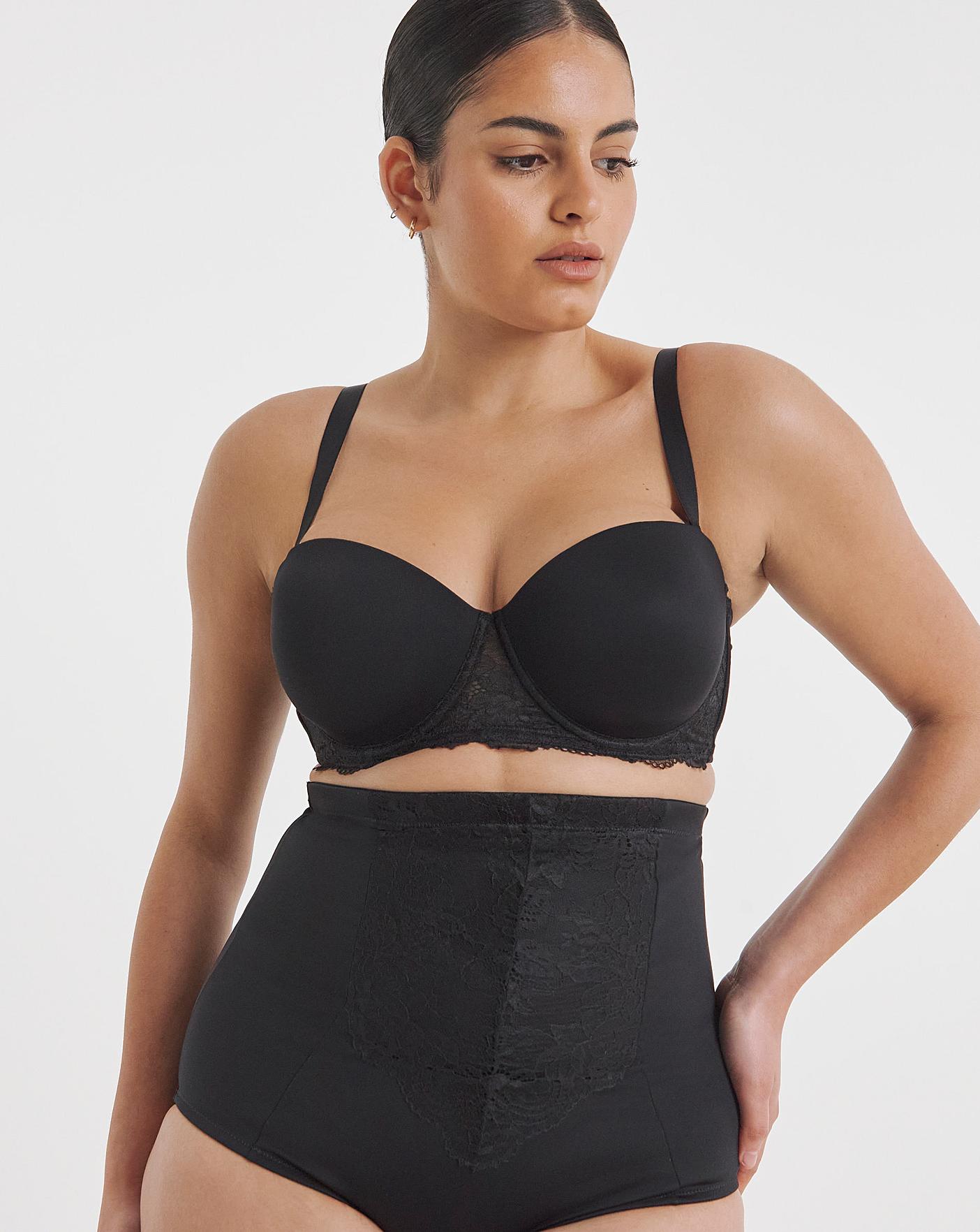 Updated for this season, our Ella range is better than ever and remains your trusty everyday essentials to provide optimal support whilst offering a feminine touch. This brand new black Ella Moulded Multiway Bra combines femininity with multi-functionality and versatility for a range of outfits. Padded, underwired moulded cups. Luxurious signature Ella lace. New embossed Ella golden hardware. Hook-and-eye fastening. Silicone trim for security and support. Multiway design can be worn conventionally, strapless, cross-back, halter neck or asymmetrically with adjustable and removable straps. Slot elastic along the top cup allows straps to be moved all across to wear however desired. Supportive fit. Pair with the matching regular or shapewear briefs to complete this beautiful set and shop the rest of the Ella range for additional styles and colours.