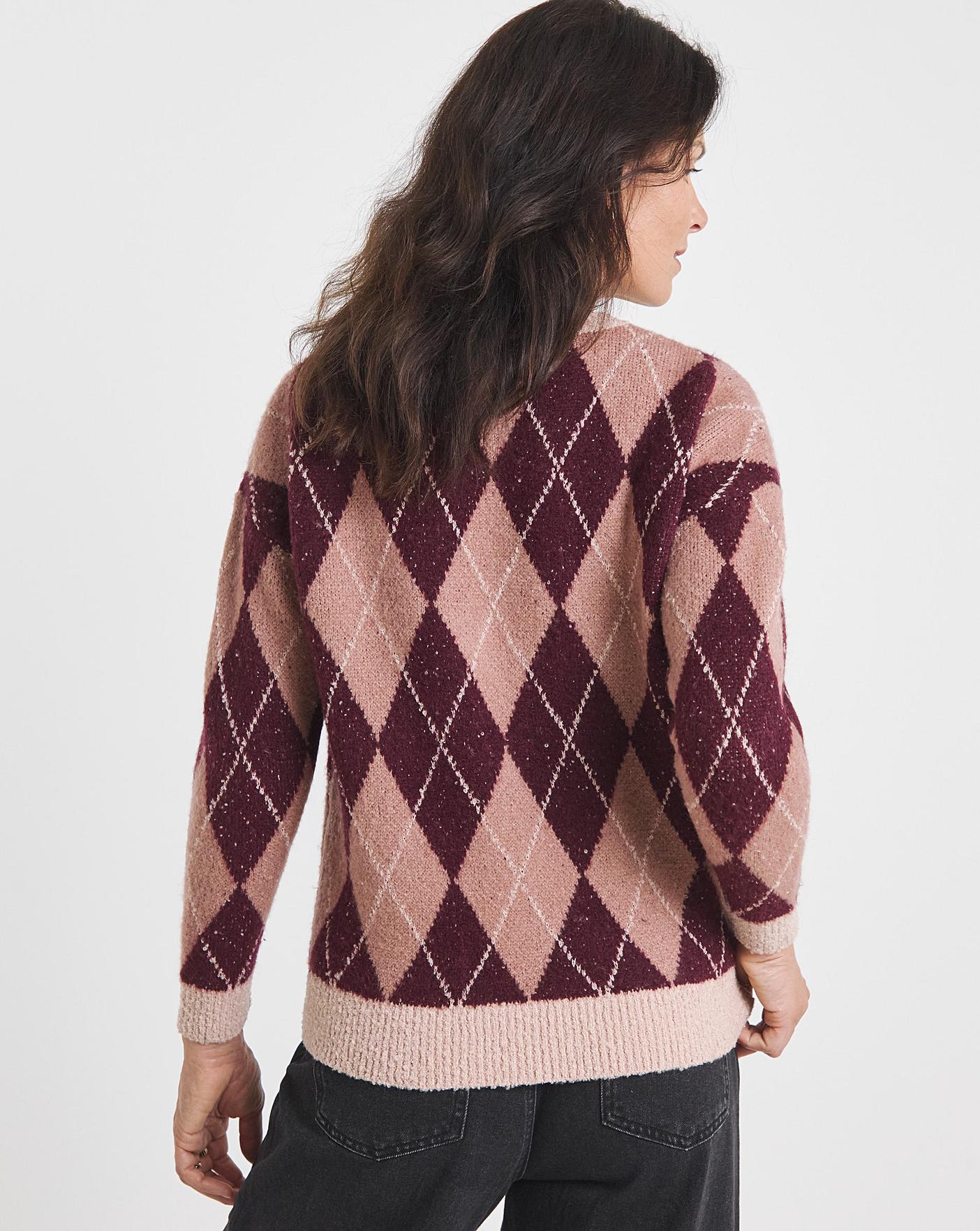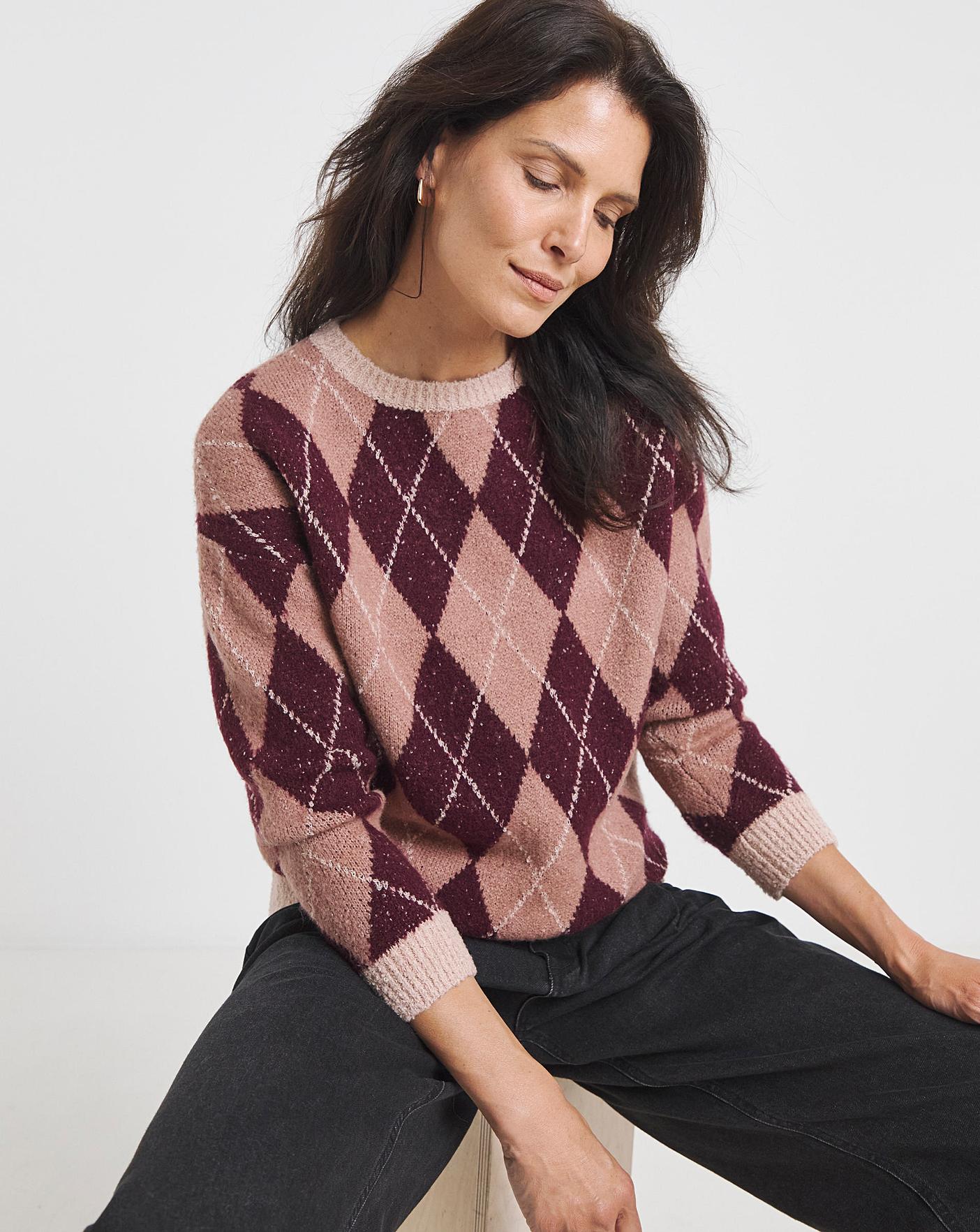 This jumper comes in a pink argyle print featuring a crew neck, long sleeves and a regular fit.