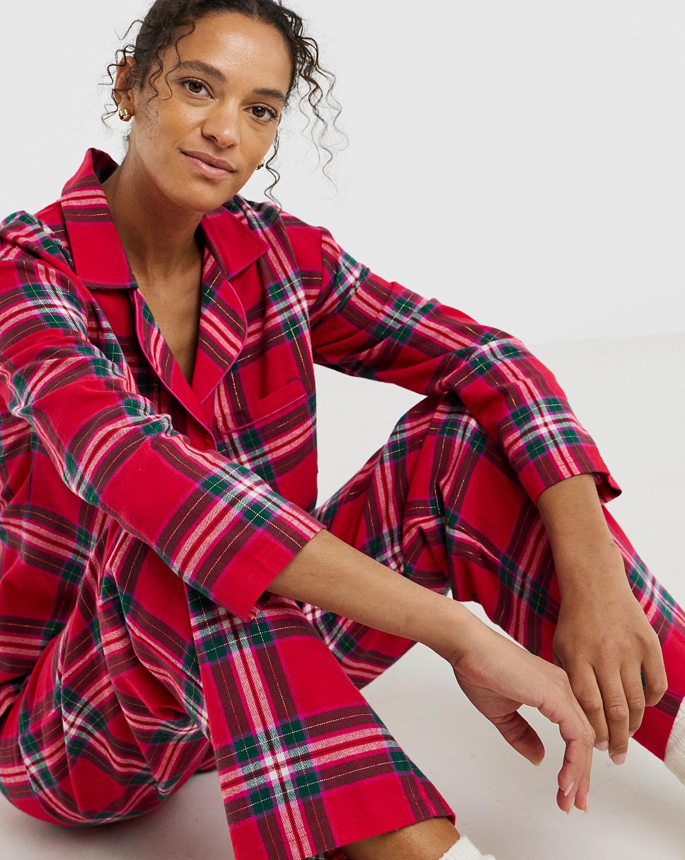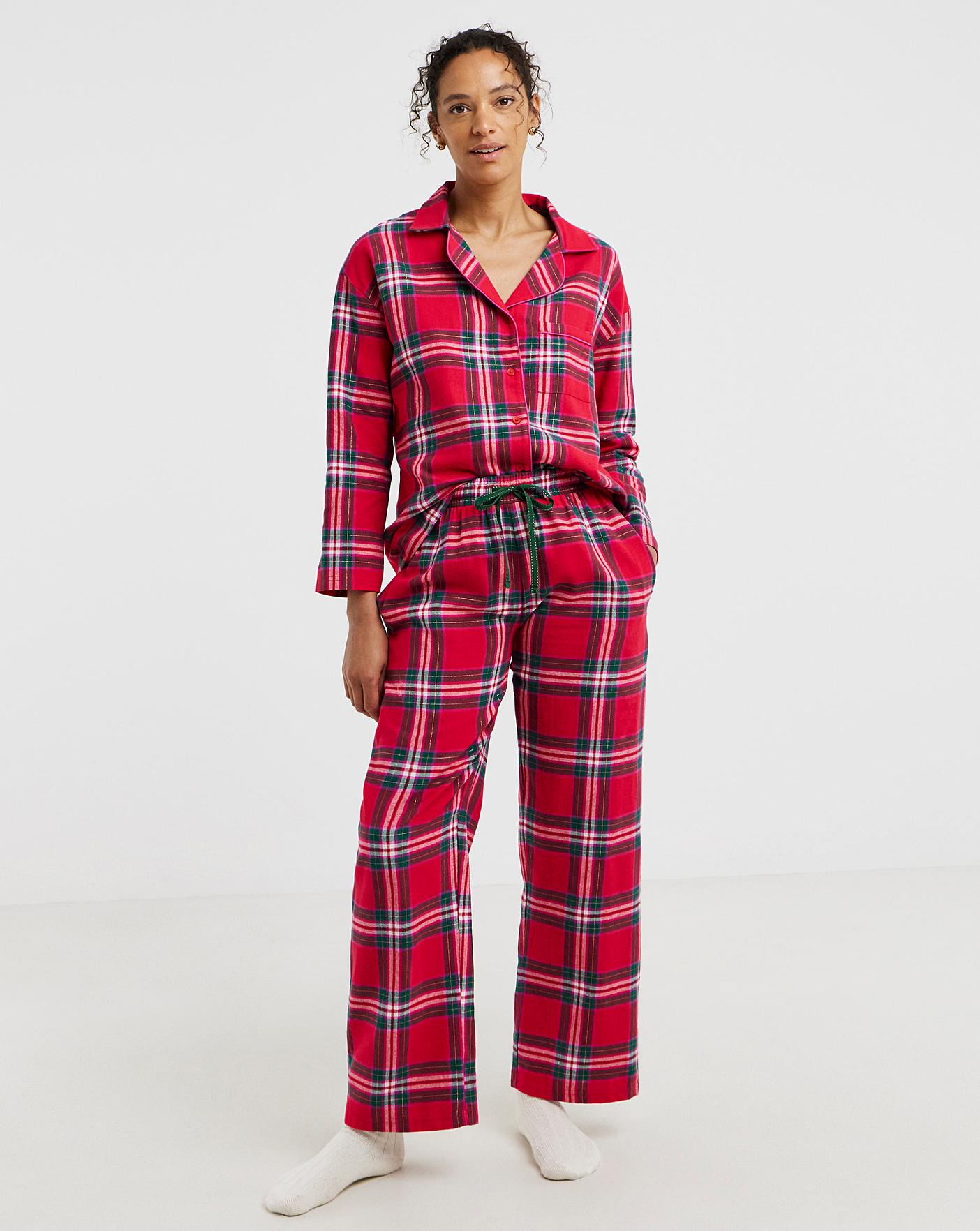 A classic shape and check pattern for this season, our button through pyjama set is ideal for colder nights. Neat regular fit. Long Sleeves. Full length bottoms. Classic red check design. The button-fastened top has a patch pocket on the chest and a soft revere collar. A drawcord at the elasticated waistband lets you find your perfect fit. All of our pyjamas are designed with fit in mind, for guaranteed comfort. Shop our range online now, in multiple prints & colourways.