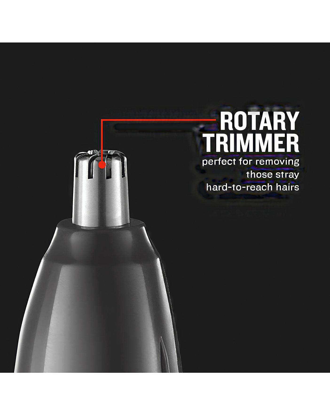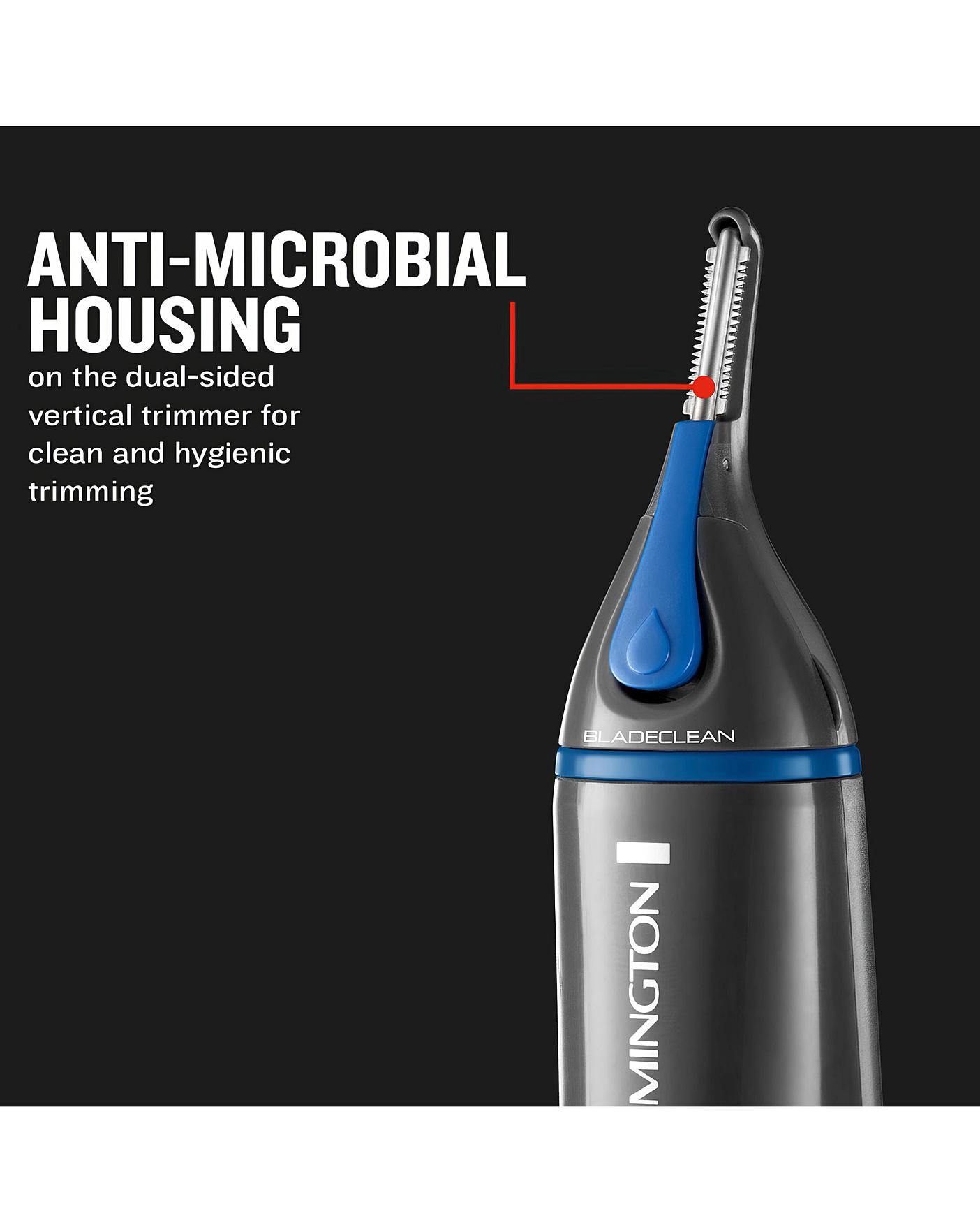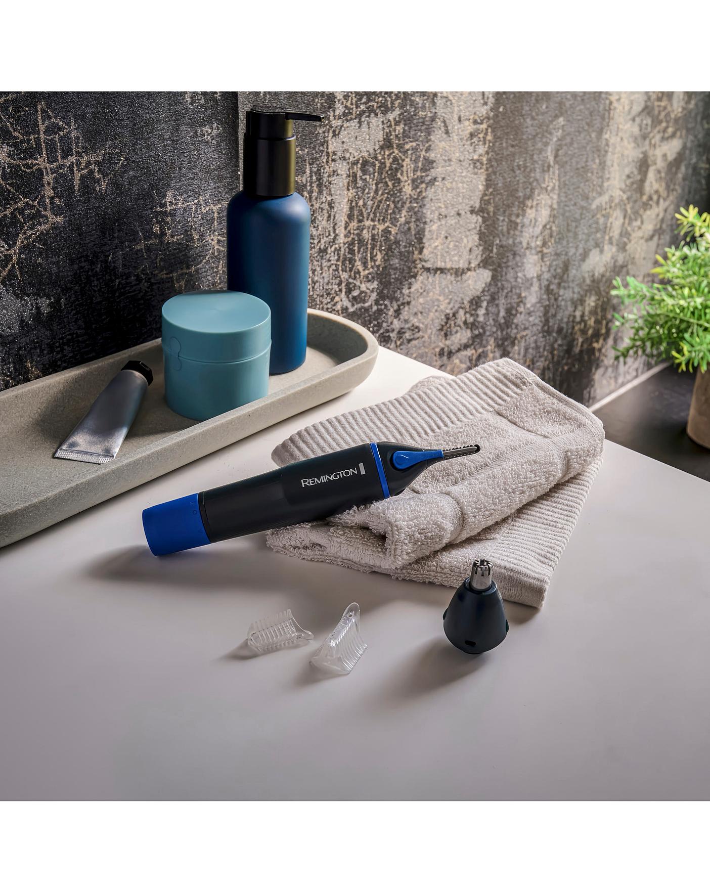 The Remington NE3850 Nose and Ear Trimmer is the perfect tool to remove uninvited hair. The anti-microbial Nano silver housing on the vertical trimmer head and Active Blade Clean System boast ions that combat bacteria, meaning even those of you with sensitive skin can avoid irritation and infection. The Active Blade Clean System has a simple-to-use push-button wash-out port that removes any fiddly cleaning, allowing you to reuse without any build-up. The comfort tip blades mean you can speed through your grooming without a care for nicks or cuts. The dual sided vertical trimmer with trimming combs gives the NANO Series NE the extra edge, giving you the option to combat stray eyebrow hairs, as well as uninvited nose and ear hair. Showerproof. Includes AA battery. 2 year manufacturer's guarantee plus 1 extra year if registered online.