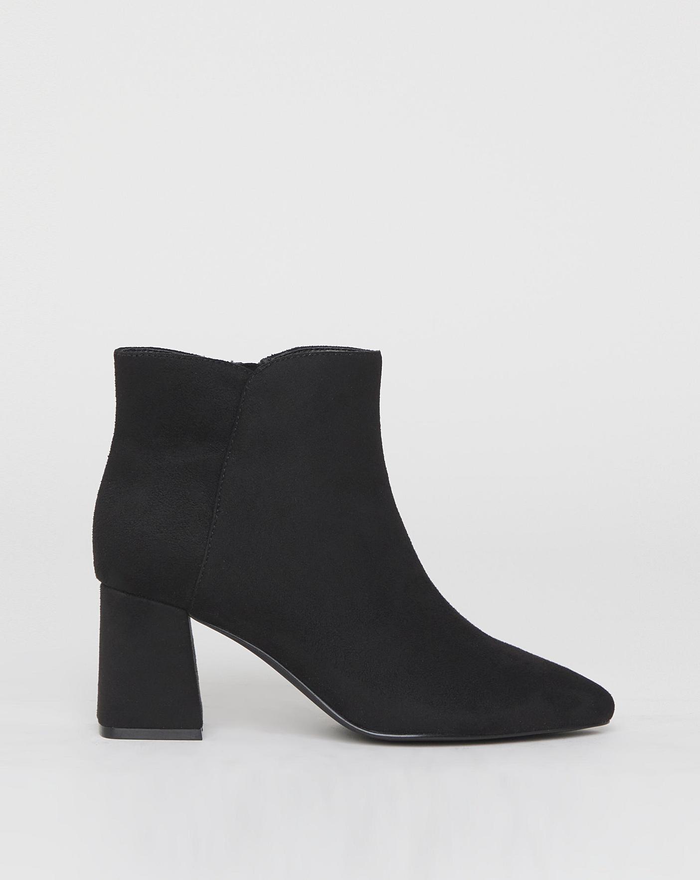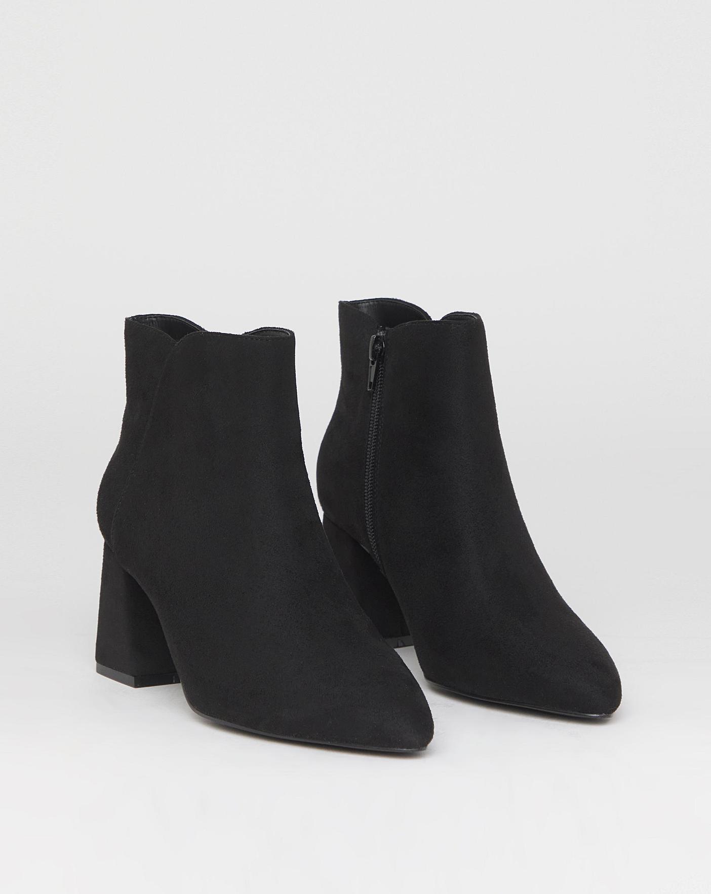 The perfect pointy boot has landed. Pointed toe shape Smart block heel Ankle inside zip for ease Cushioned sock for ultimate comfort