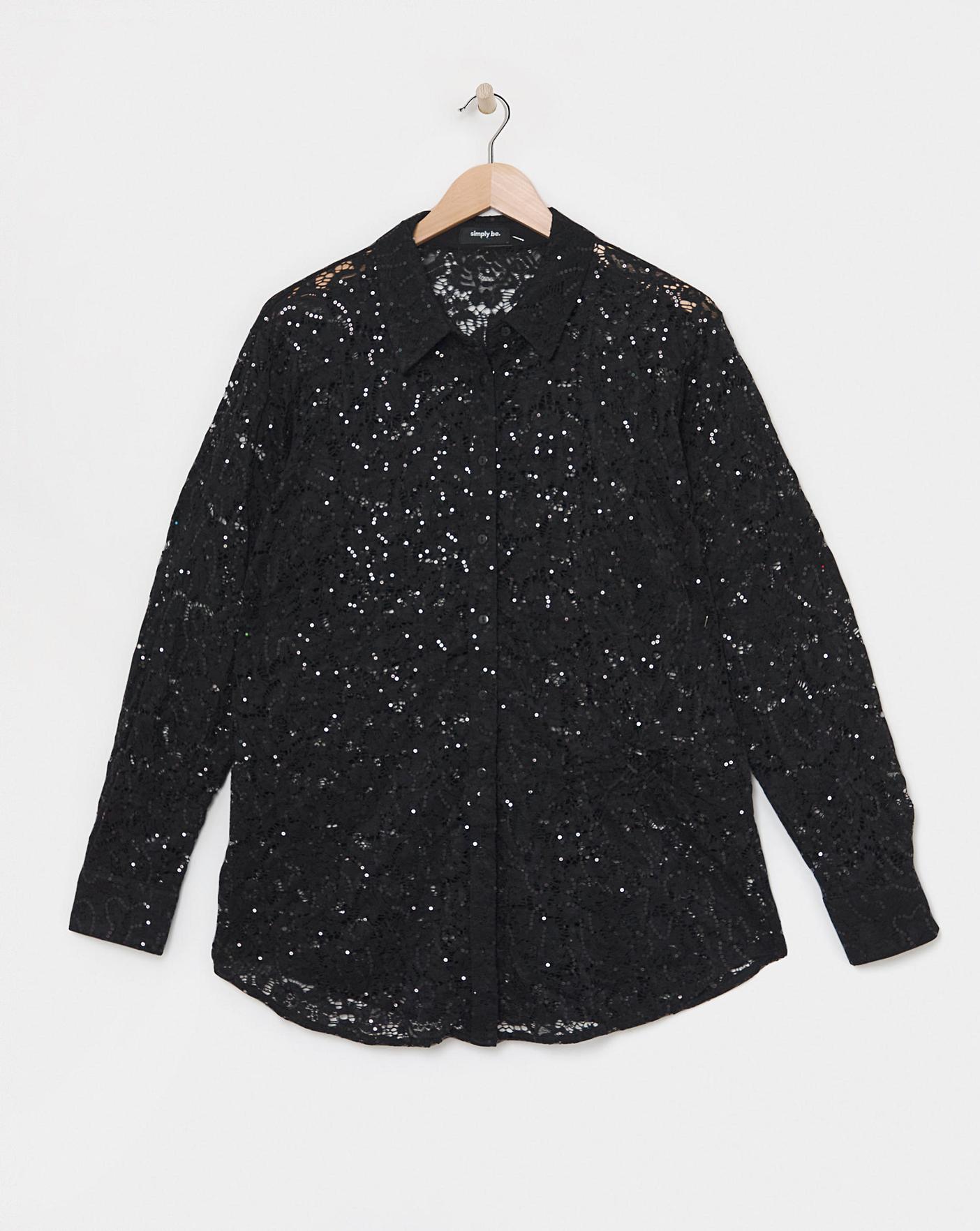Styled up with heels, or down with boots- our Sequin Lace Shirt is a wardrobe staple.