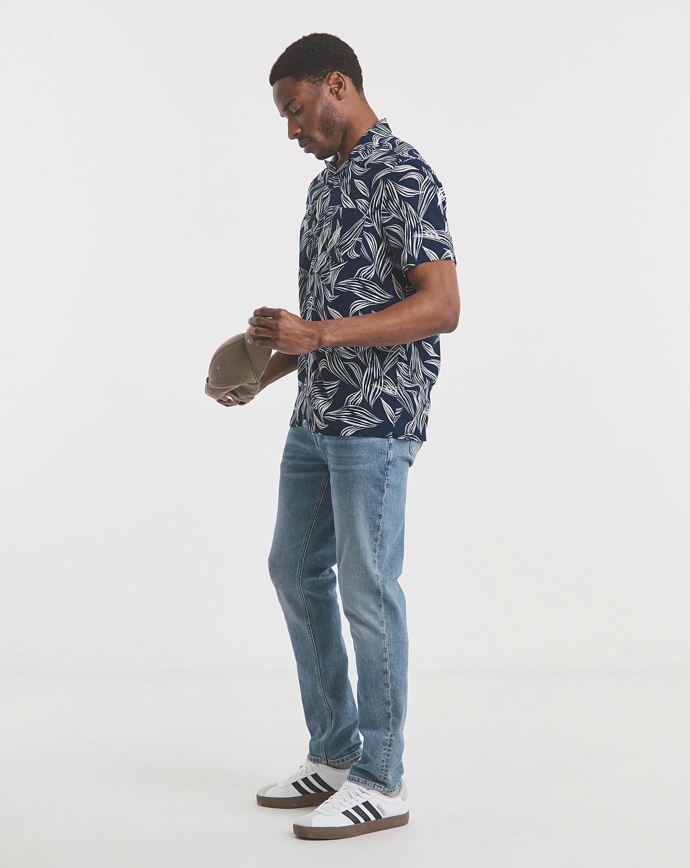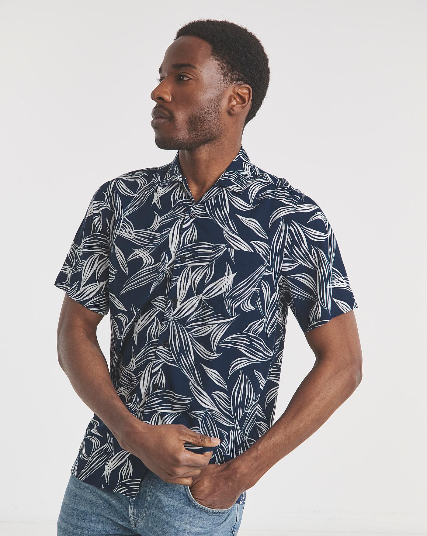 Elevate your style this season with the Jacamo Palm Print Revere Collar Shirt, making it a perfect wardrobe addition this summer season. Finished with a button through design and revere collar for a relaxed style and printed fabric