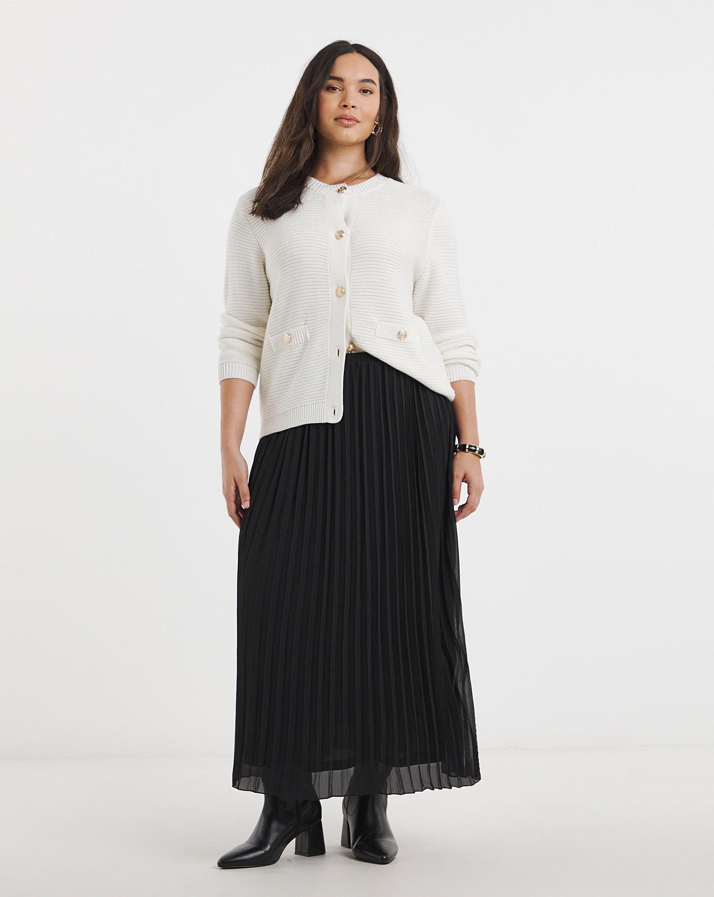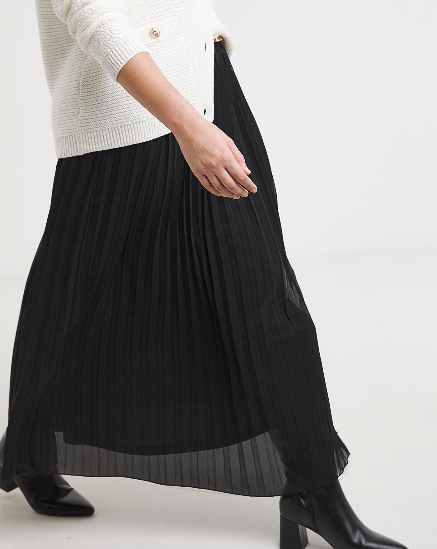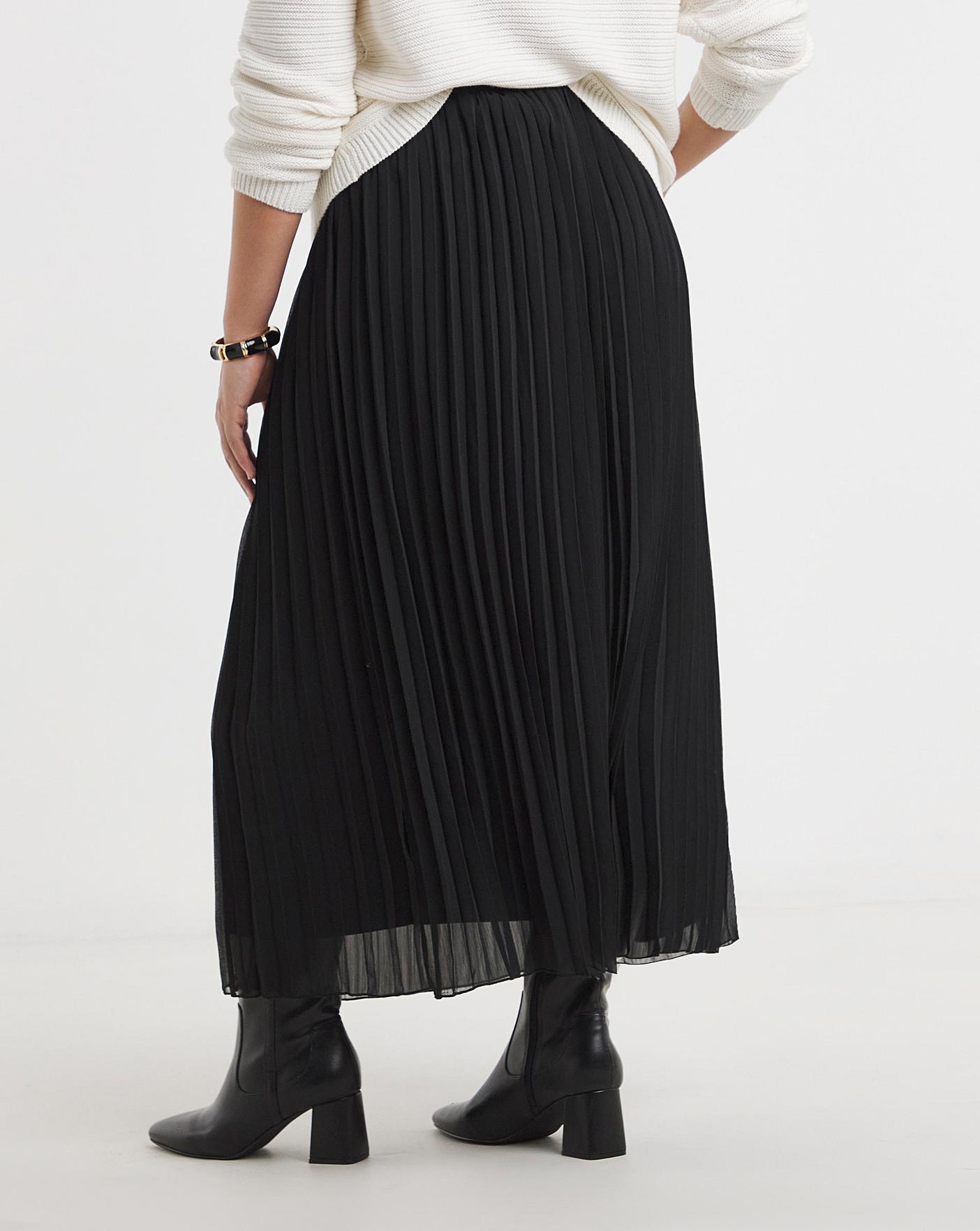 Our new Pleated Chiffon Midaxi Skirt will elevate your look for any occasion! It features a floaty chiffon fabric, a practical black lining, pleat detailing, and flattering midaxi length. Take from day to night by swapping a trainer for a smart flat or heeled boot.