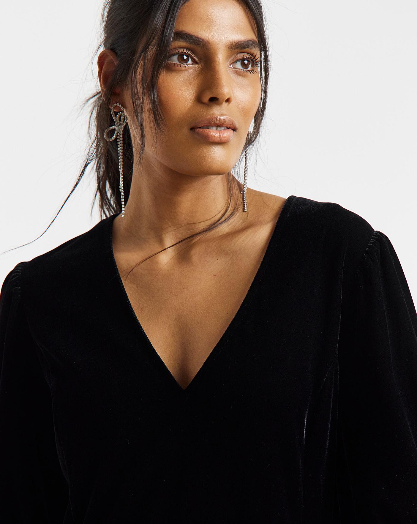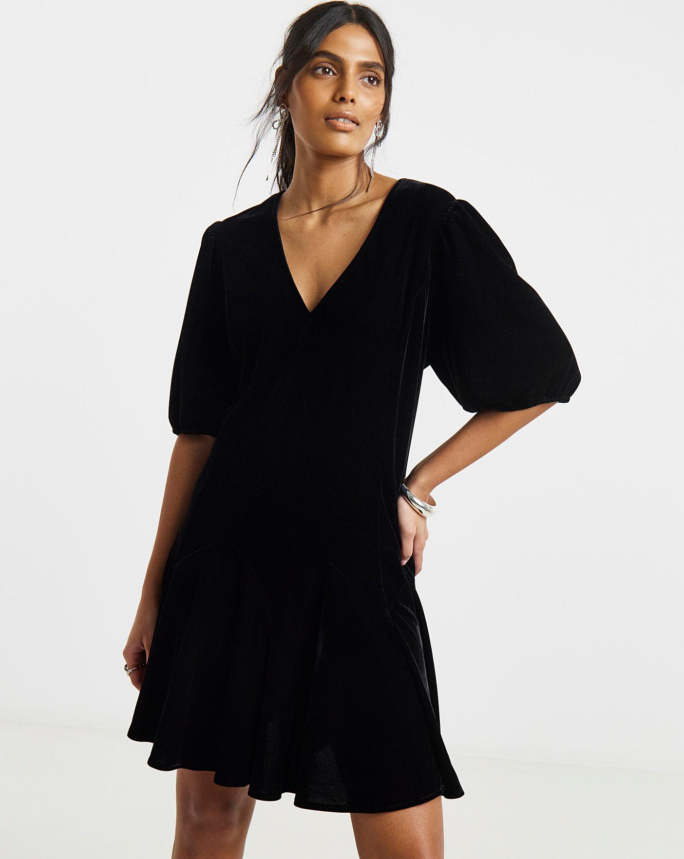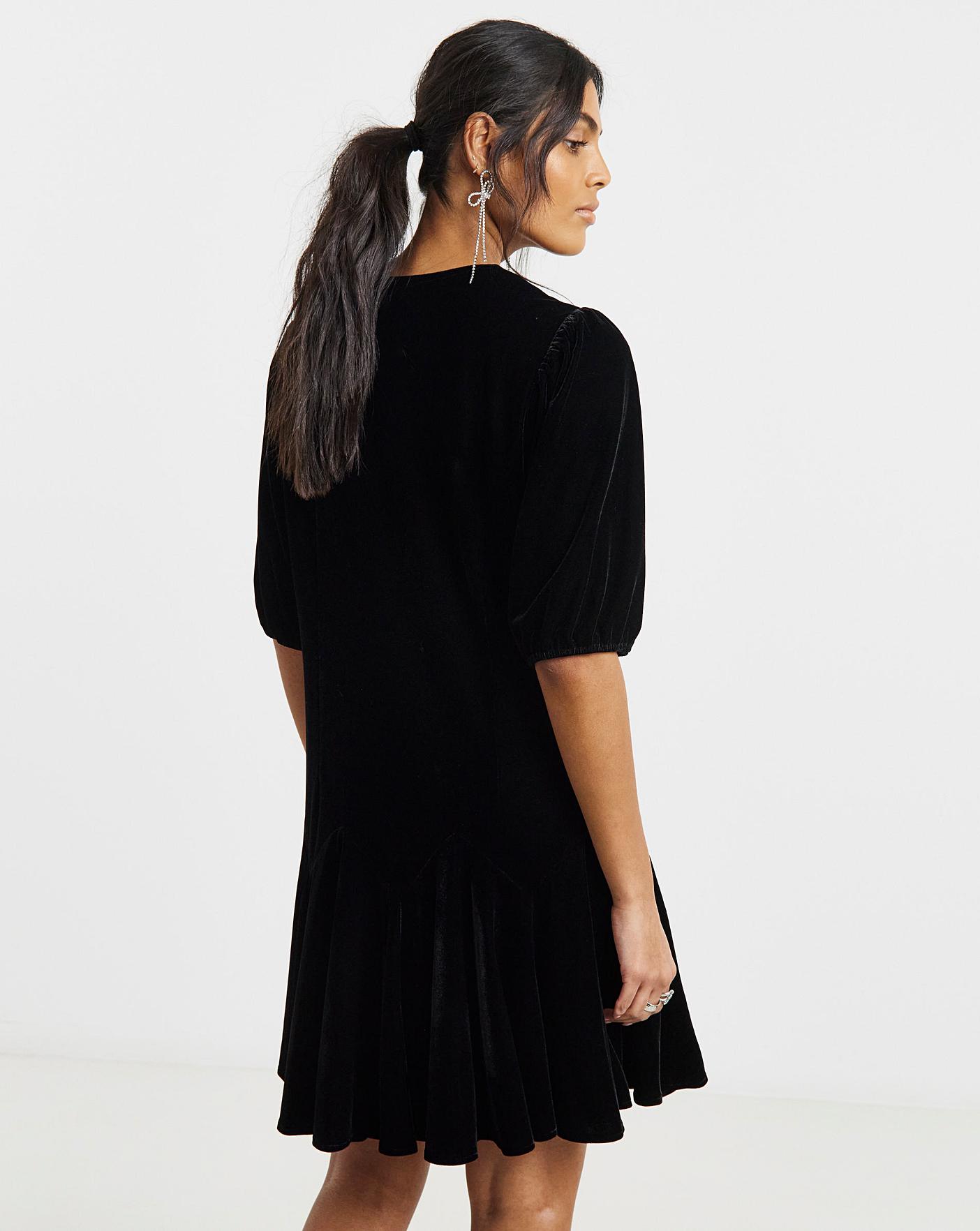 Simply Be Black Velour Godet Swing Dress
