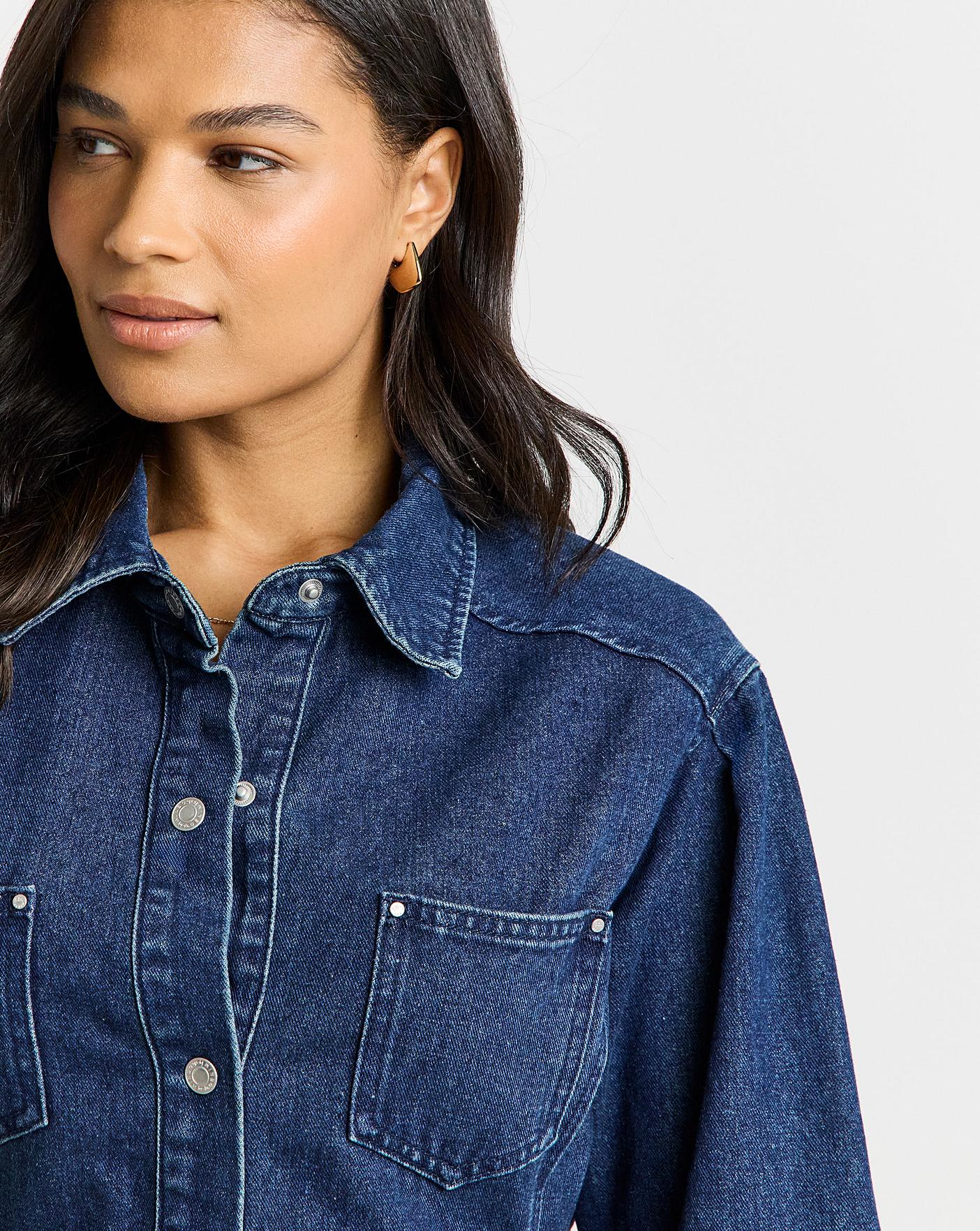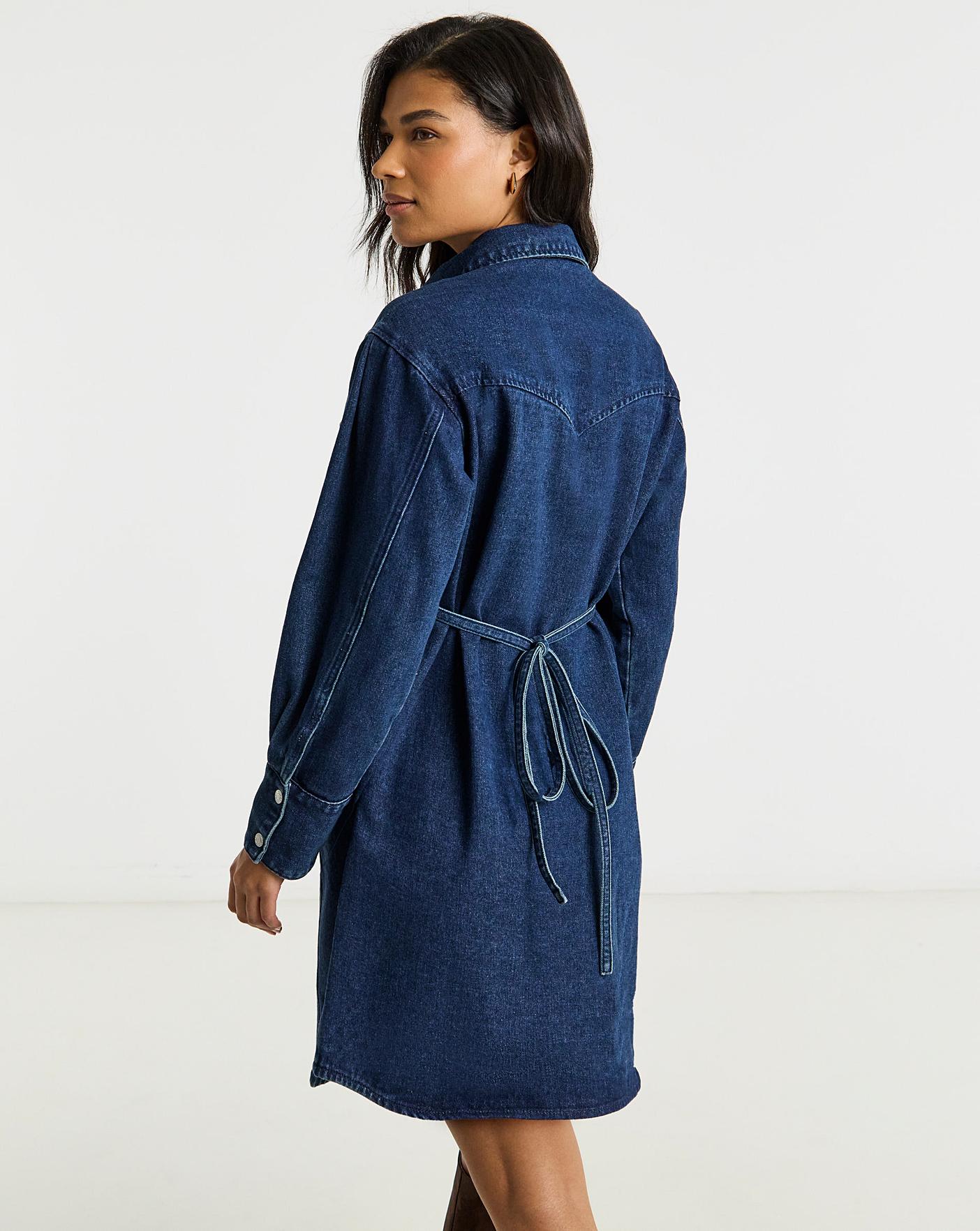 Our new Self Belted Oversized Denim Shirt Dress is a twist on a classic denim dress with the extra feature of the flattering adjustable back tie. Featuring: A button through design, long sleeves, collared neck mini length, oversized fit. Perfect for day-to-night styling!