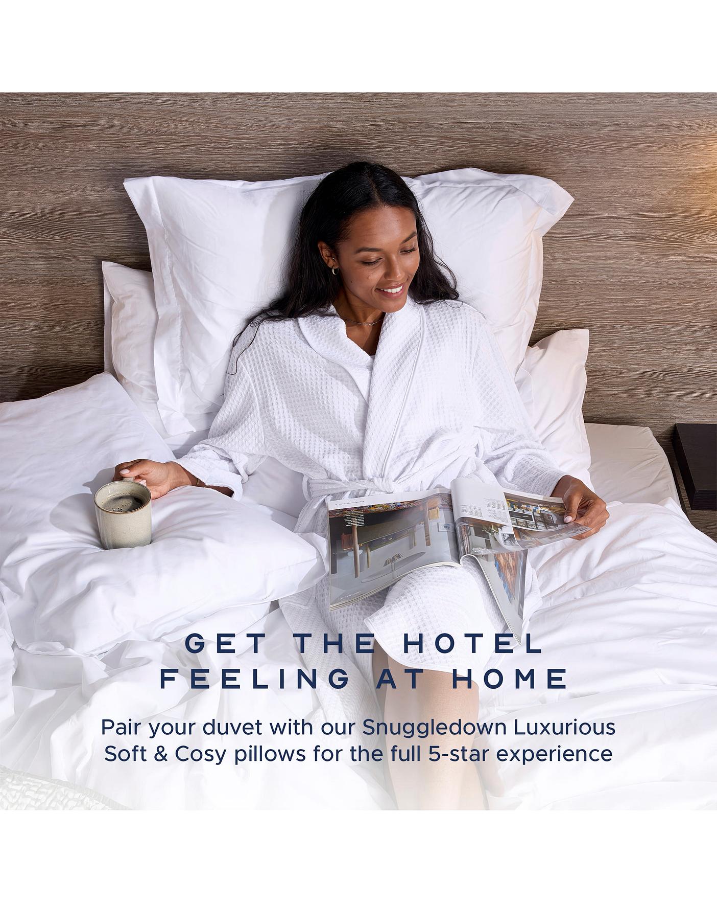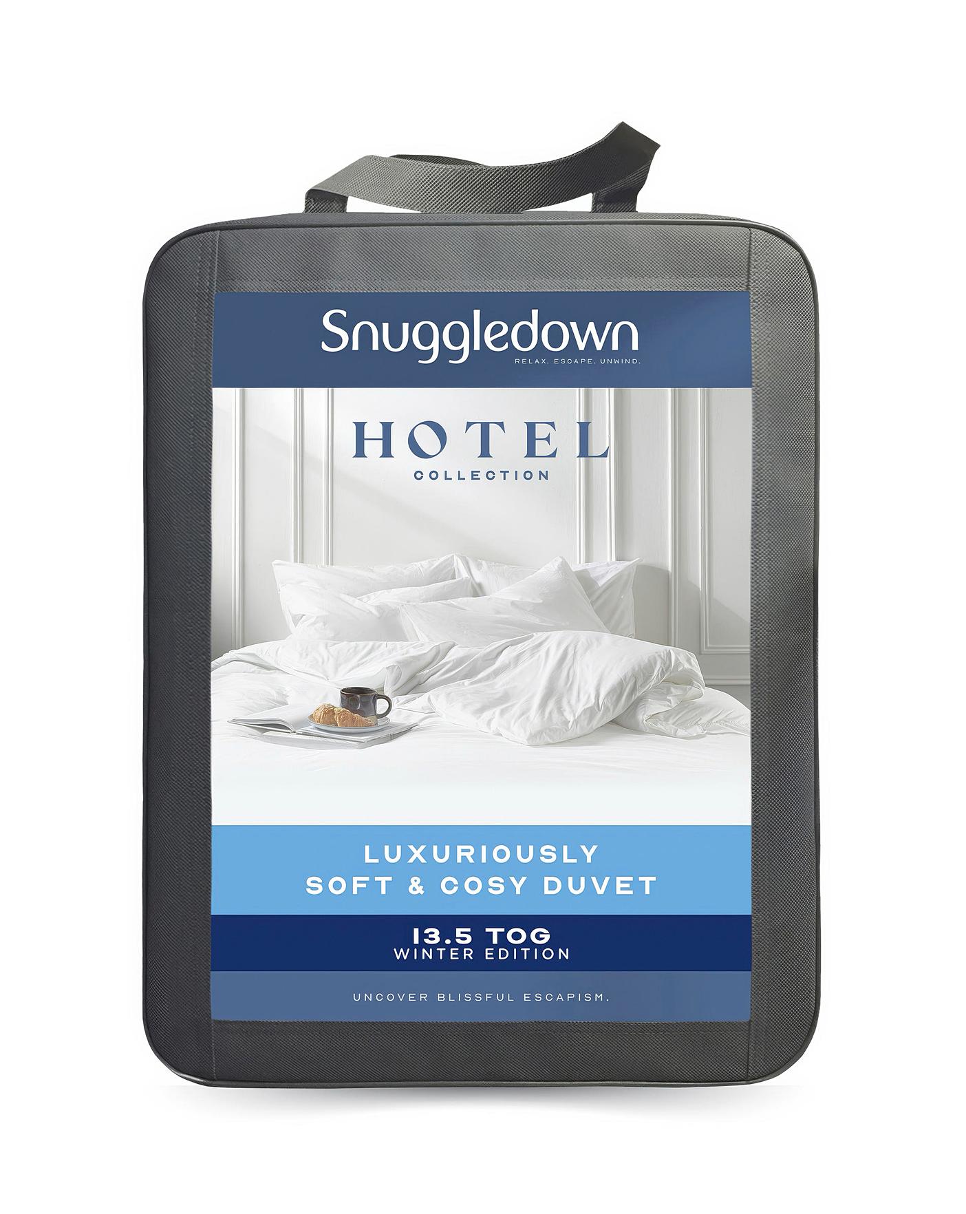 Luxuriously soft and lofty with a natural drape, this Luxurious Hotel 13.5 Tog Winter Duvet from Snuggledown is wonderfully light. Made in the UK to exacting standards, this premium duvet combines quality and functionality so that you can enjoy an unsurpassed nights sleep whilst wrapped in hotel quality luxury. The duvet is filled with a soft and cosy hollowfibre which beautifully balances warmth and weight, and being a 13.5 tog duvet, its an ideal option for winter and for cooler months, or for those who prefer a warmer duvet.