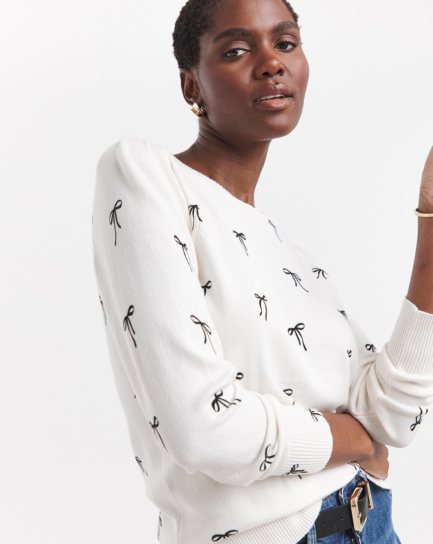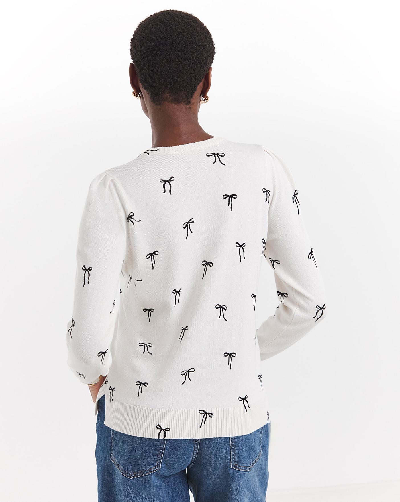 This lightweight knitted jumper comes in a feminine all over bow print and a staple for your wardrobe, featuring a crew neckline, long sleeves and a regular fit.