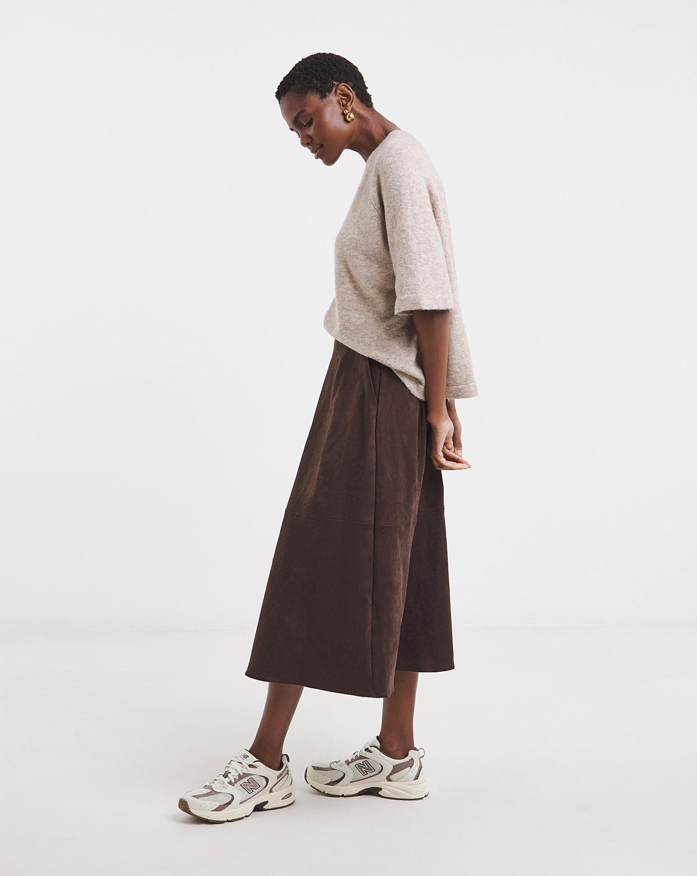 This fashionable suede midi skirt is perfect for any occasion. A timeless piece made for stylish everyday dressing.