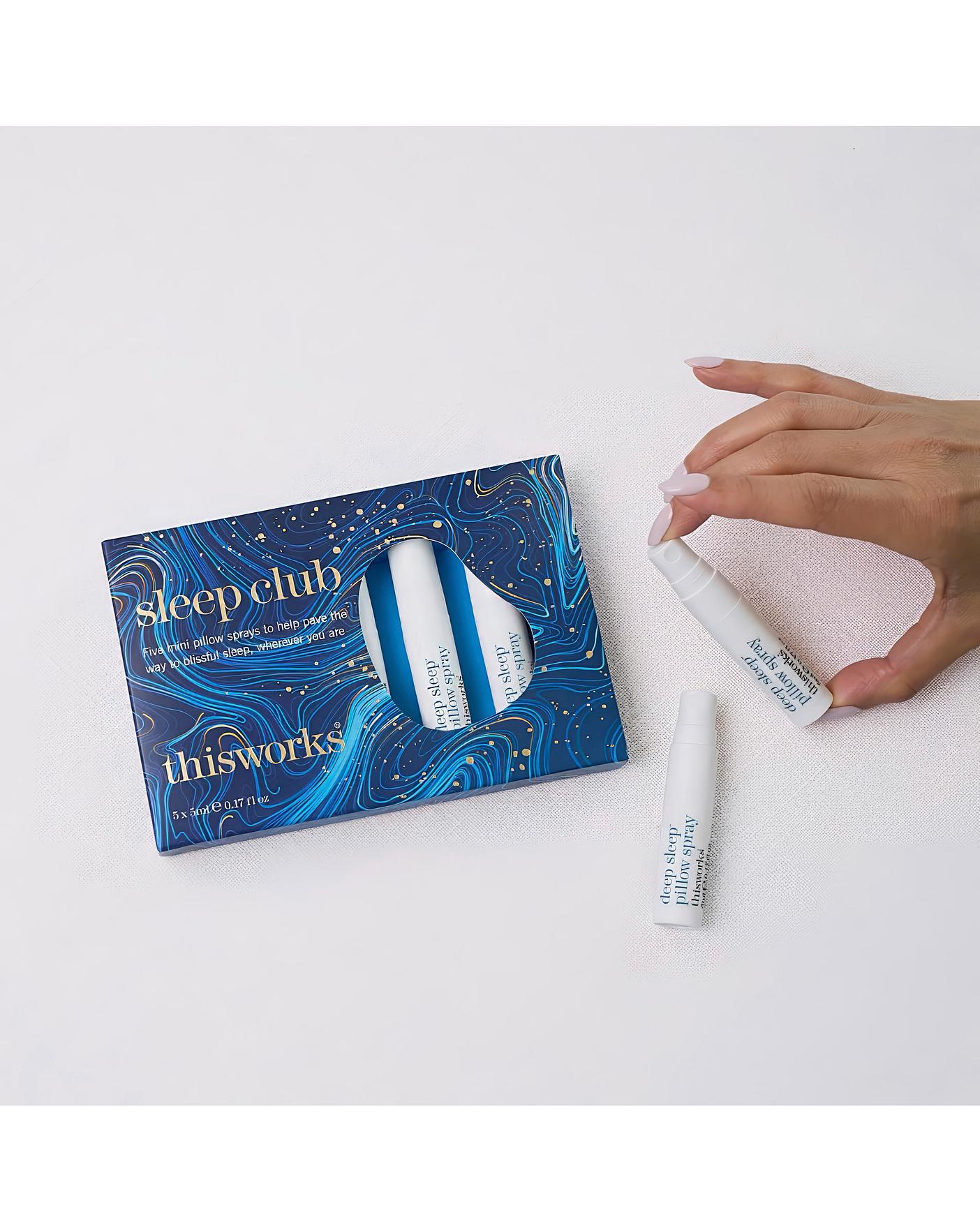 Tagline Five miniature pillow sprays for a good night's sleep wherever you are.Whenever and wherever you need a good night's sleep.Calming Lavender, soothing Vetivert and balancing Camomile are the essential oils that make up This Works Deep Sleep Superblend.A good night's sleep shouldn't only happen at home.