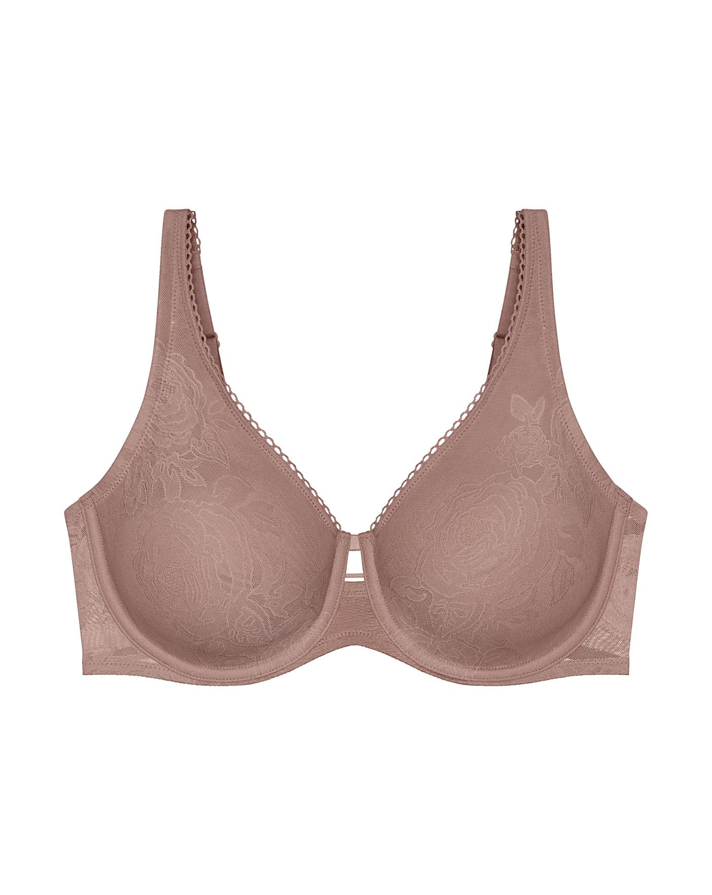 Wild Rose Sensation elegantly feminine jacquard lace minimiser bra is light and flexible, with great freedom of movement. Reduces your bust size optically by one cup size. Forming cups without additional padding. Perk up your fuller bust, for a visibly reduced but rounder shape. Non-padded, underwired minimiser bra. Added comfort and support with wider straps. Beautiful back neckline with hook and eye fastening, adjustable in three positions and nickel free.