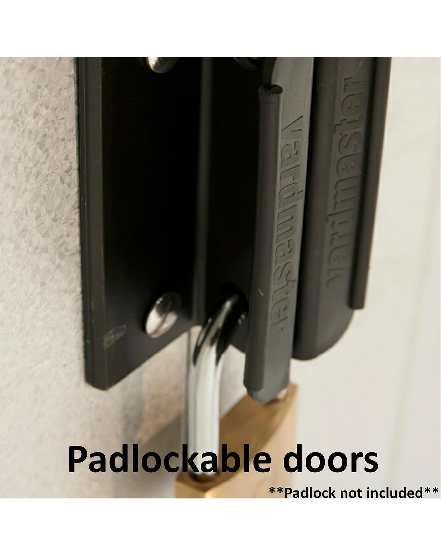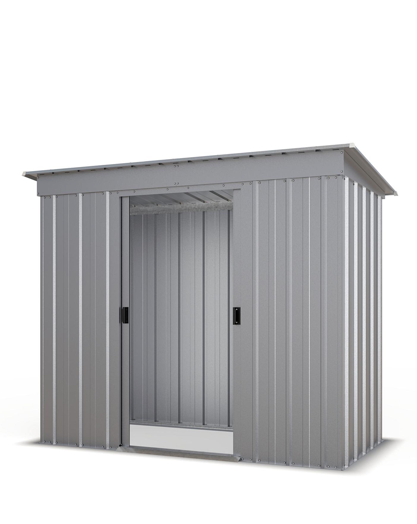 Solve those garden storage problems with the Yardmaster 6 x 4 ft Pent Metal Shed with double sliding doors. Resin-coated in a silver-coloured finish, heavier than many similar models. Manufactured in the UK with overlapping double sliding doors and two translucent roof panels. Detailed assembly instructions and anchor kit provided. Base not included. To buy the floor frame kit for this product, please see item number QB036.